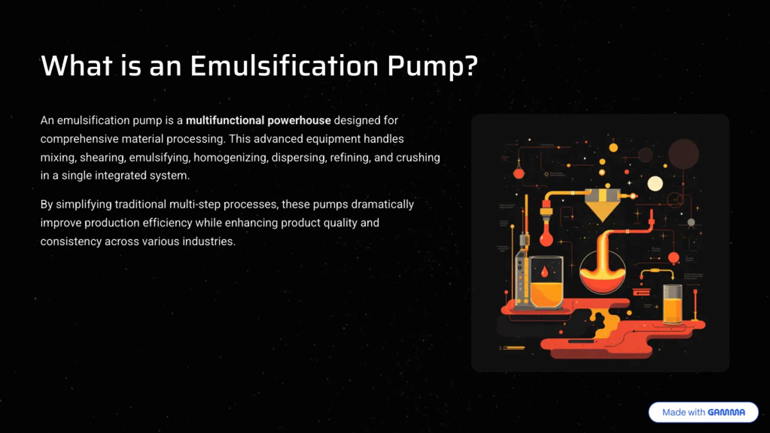 What is an Emulsification Pump? An emulsification pump is a multifunctional powerhouse designed for comprehensive material processing. This advanced equipment handles mixing, shearing, emulsifying, homogenizing, dispersing, refining, and crushing in a single integrated system. By simplifying traditional multi-step processes, these pumps dramatically improve production efficiency while enhancing product quality and consistency across various industries.