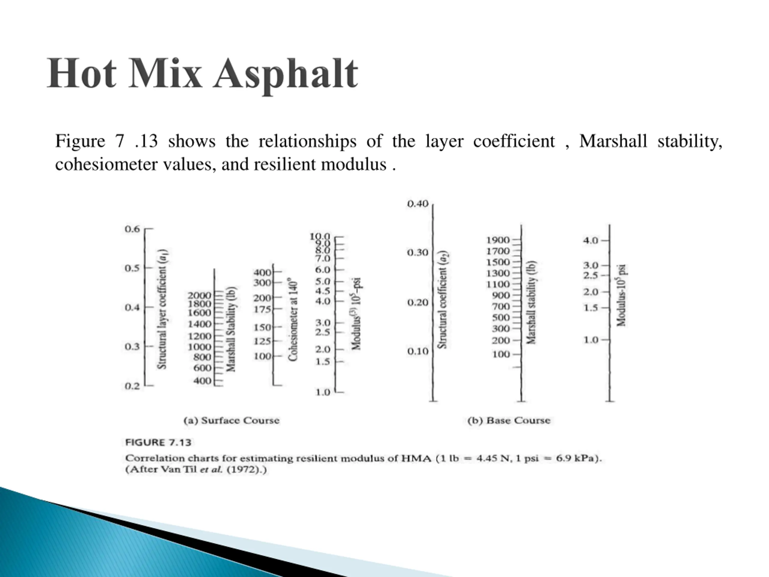 Figure 7 .13 shows the relationships of the layer coefficient , Marshall stability, cohesiometer values, and resilient modulus .