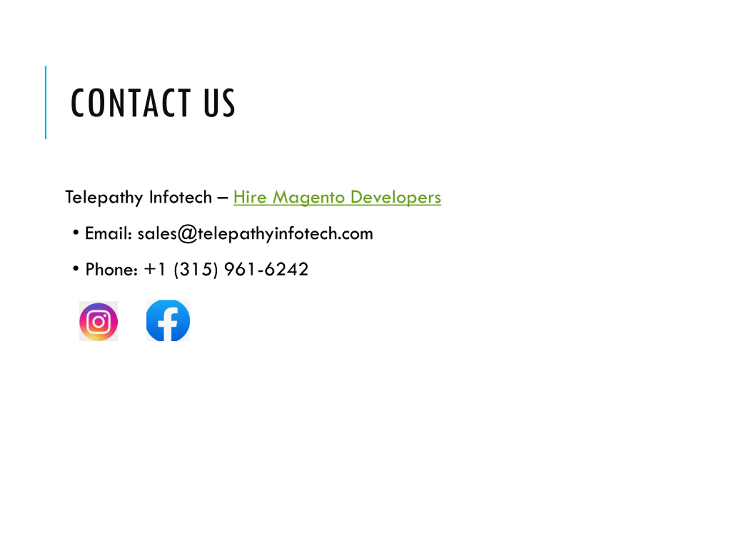 CONTACT US Telepathy Infotech Hire Magento Developers Email: sales@telepathyinfotech.com Phone: +1 (315) 961-6242