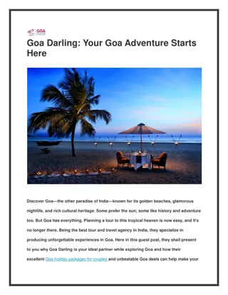 Your Ultimate Guide to Self-Driven Car Rentals at Goa Airport Unlimited Freedom Explore every corner of Goa, from pristine beaches to lively markets, with the flexibility of a self-driven car rental. Breathtaking Views Chase the sunset or wake up for the sunrise at the most scenic spots in Goa without relying on public transportation.