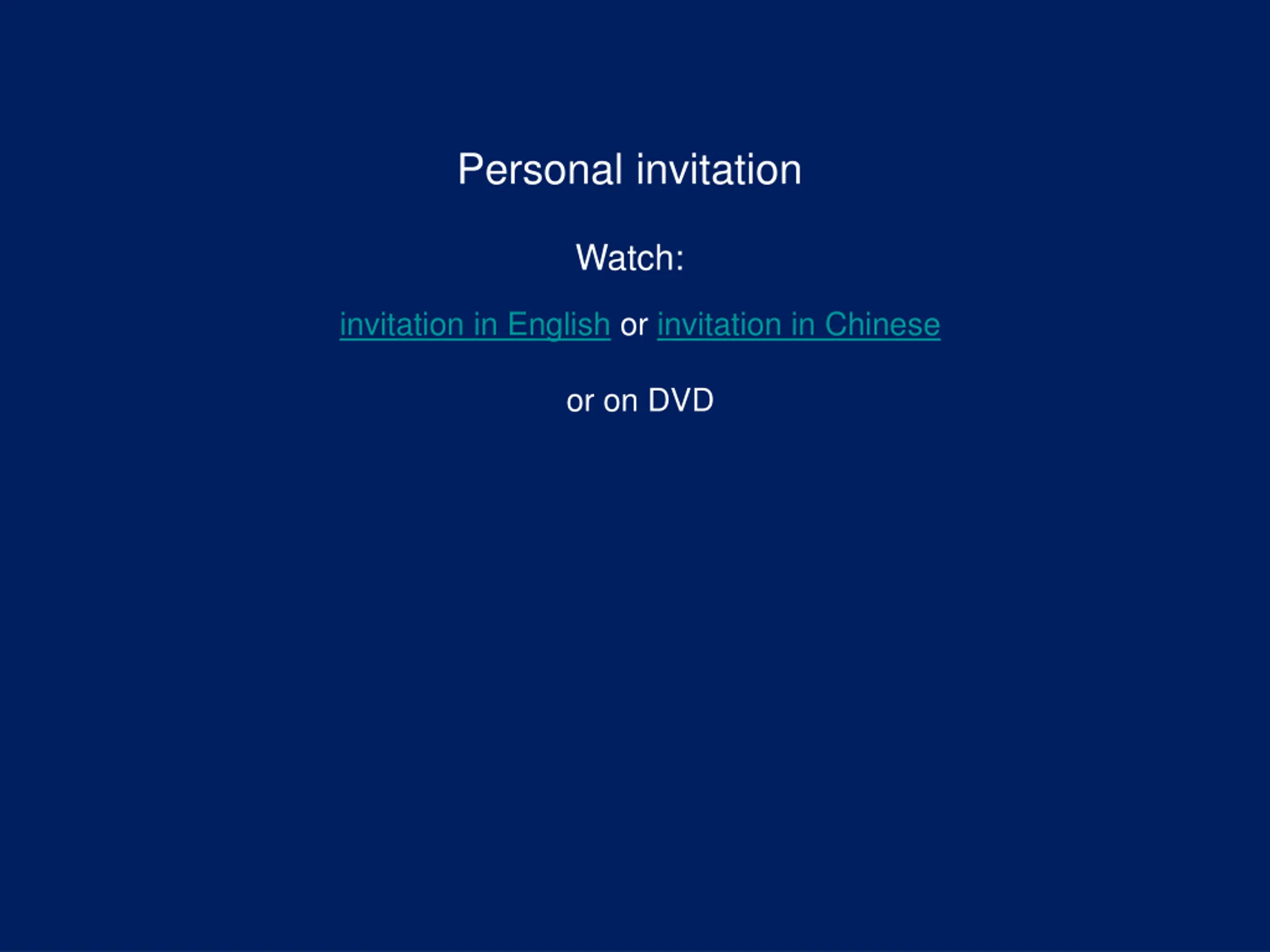 Personal invitation Watch: invitation in English or invitation in Chinese or on DVD