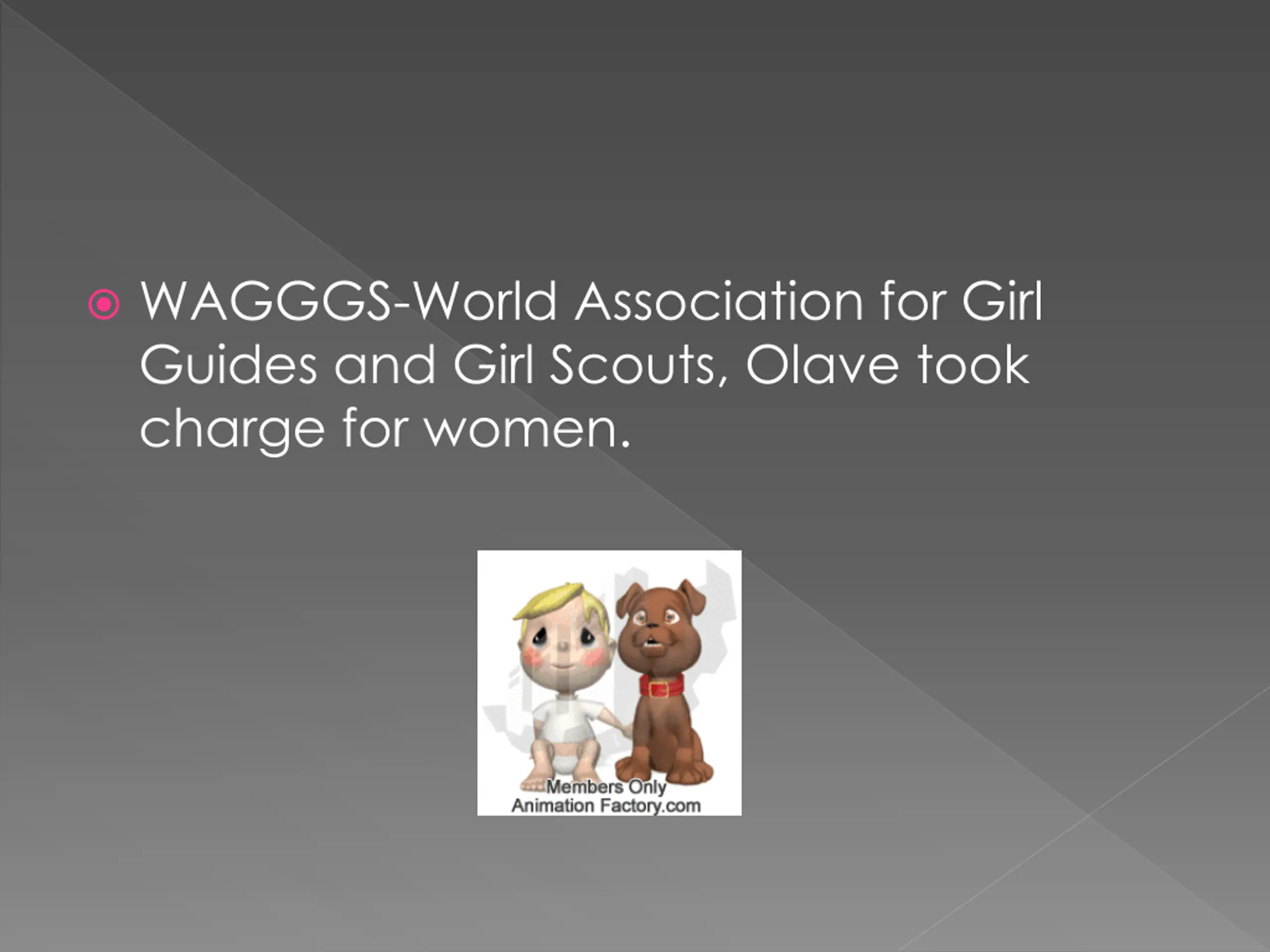 WAGGGS-World Association for Girl Guides and Girl Scouts, Olave took charge for women.