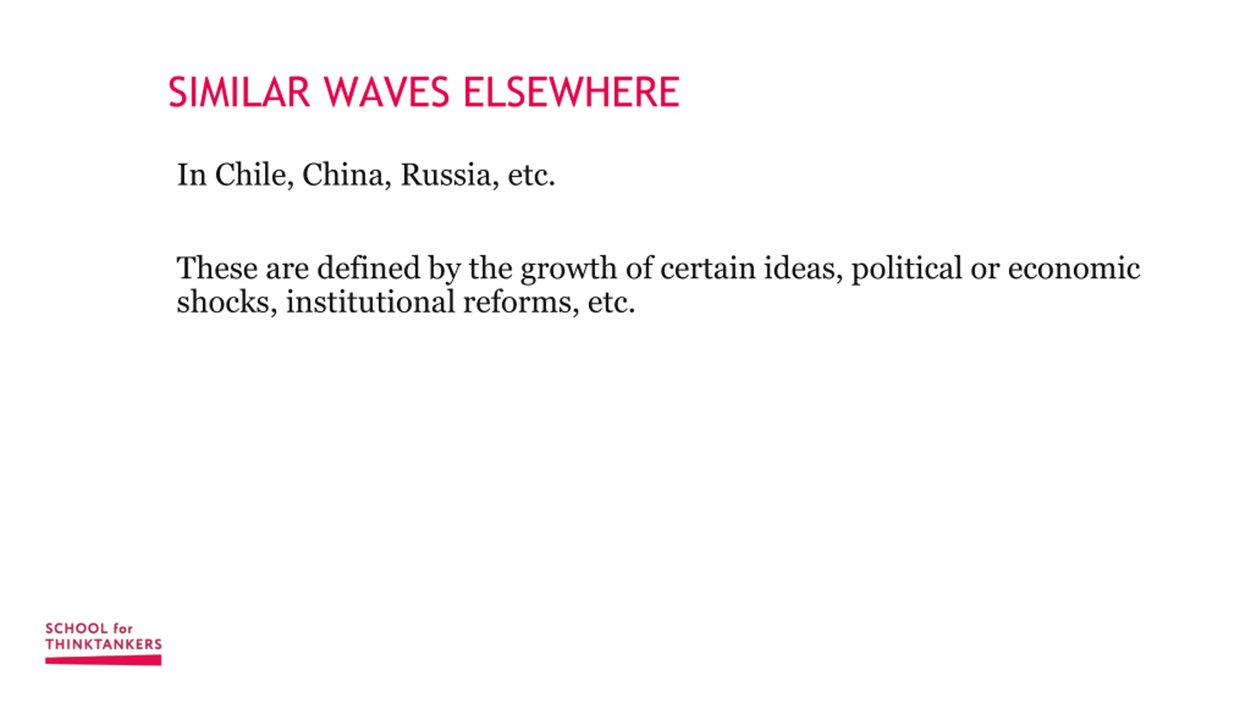SIMILAR WAVES ELSEWHERE In Chile, China, Russia, etc. These are defined by the growth of certain ideas, political or economic shocks, institutional reforms, etc.