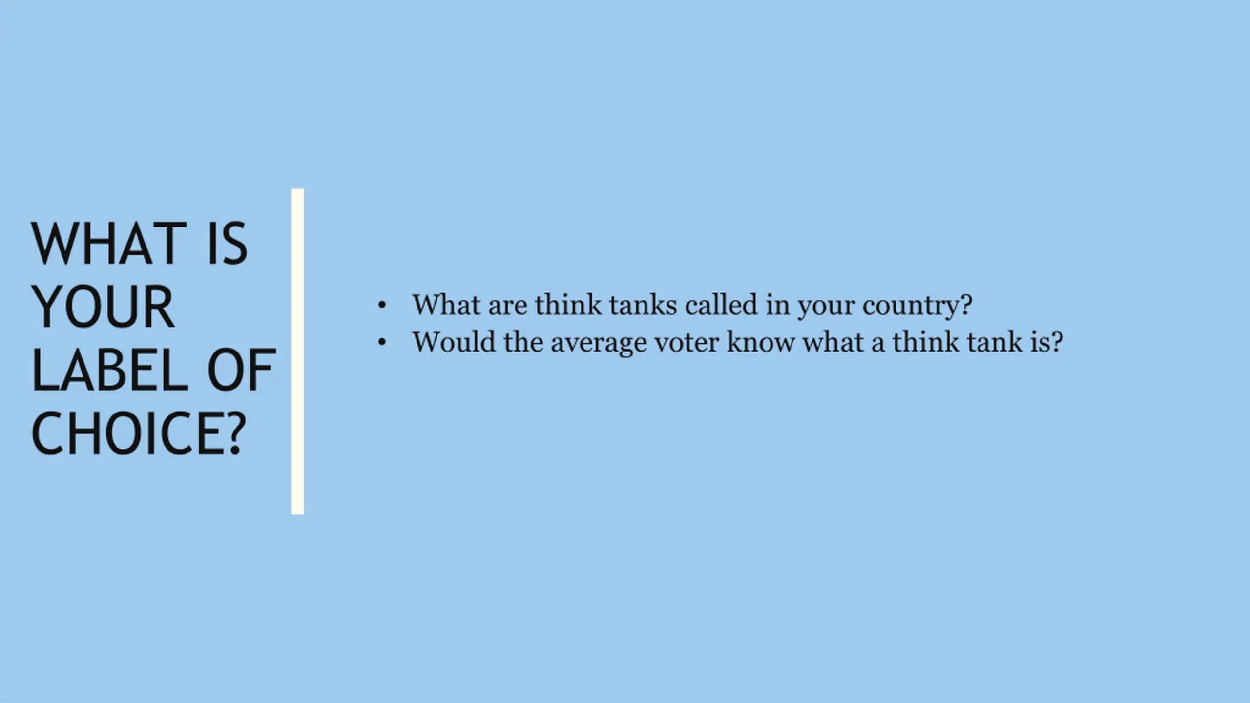 WHAT IS YOUR LABEL OF CHOICE? What are think tanks called in your country? Would the average voter know what a think tank is?