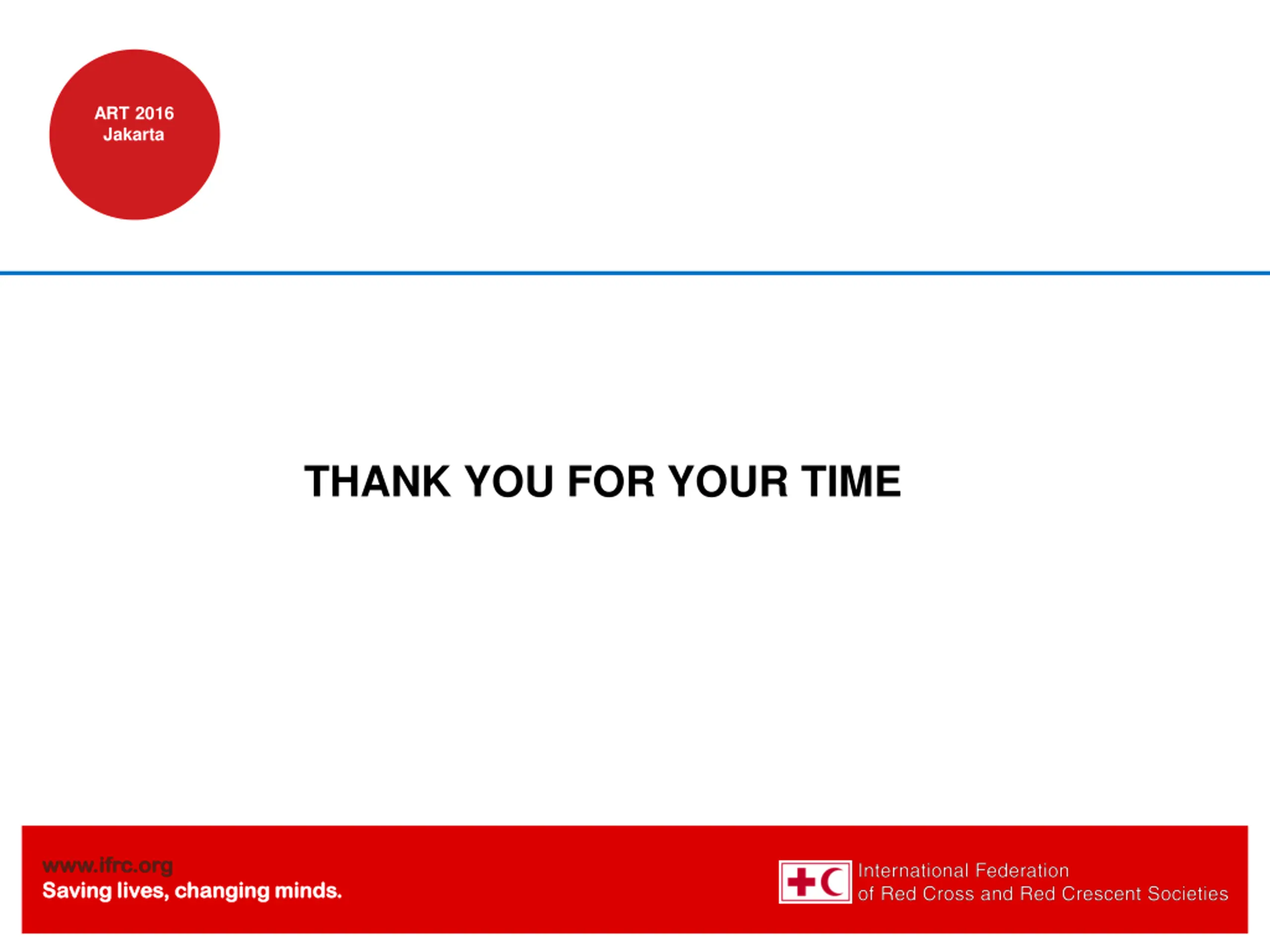 ART 2016 Jakarta THANK YOU FOR YOUR TIME www.ifrc.org www.ifrc.org Saving lives, changing minds. Saving lives, changing minds.