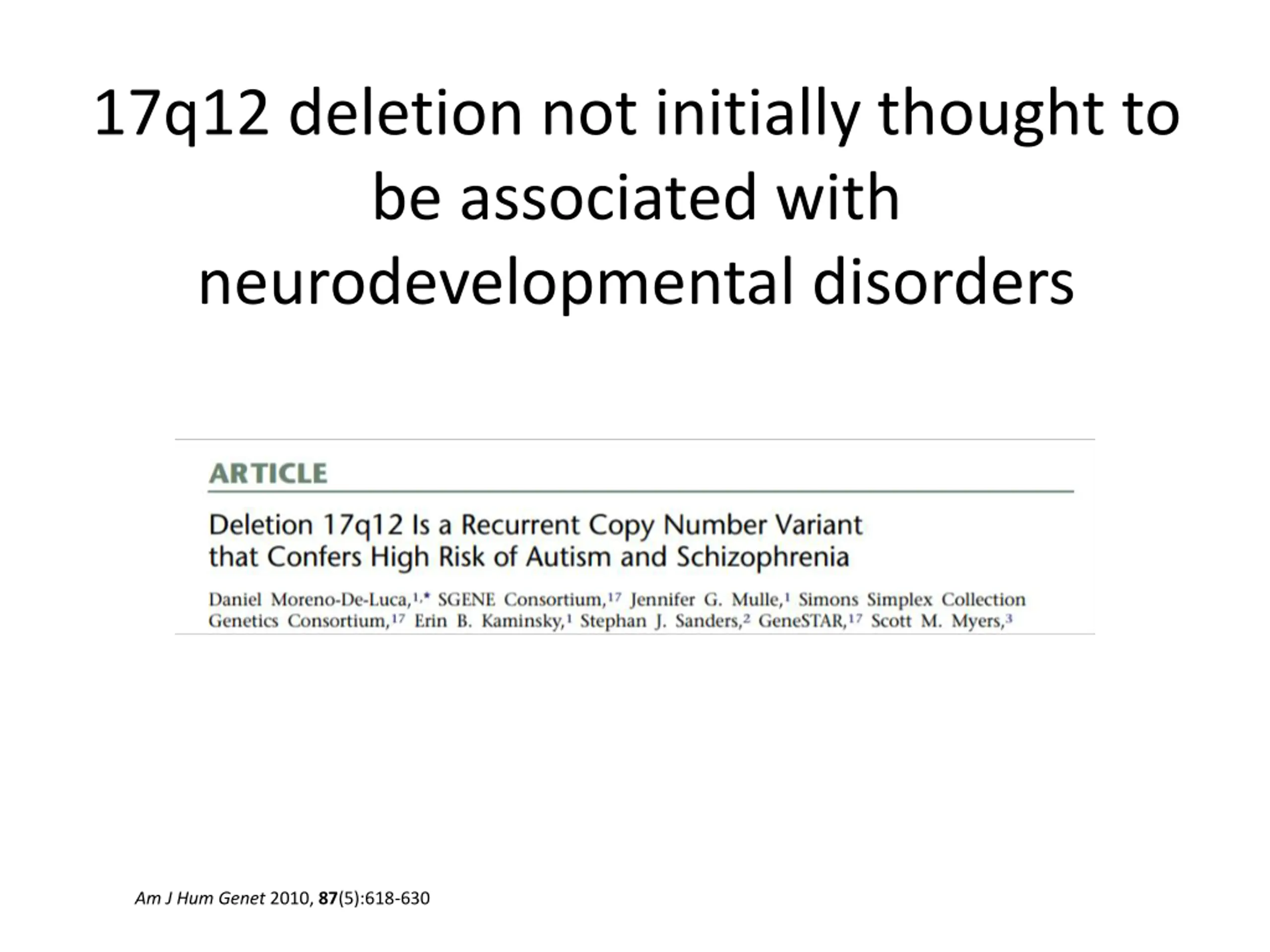 17q12 deletion not initially thought to be associated with neurodevelopmental disorders Am J Hum Genet 2010, 87(5):618-630