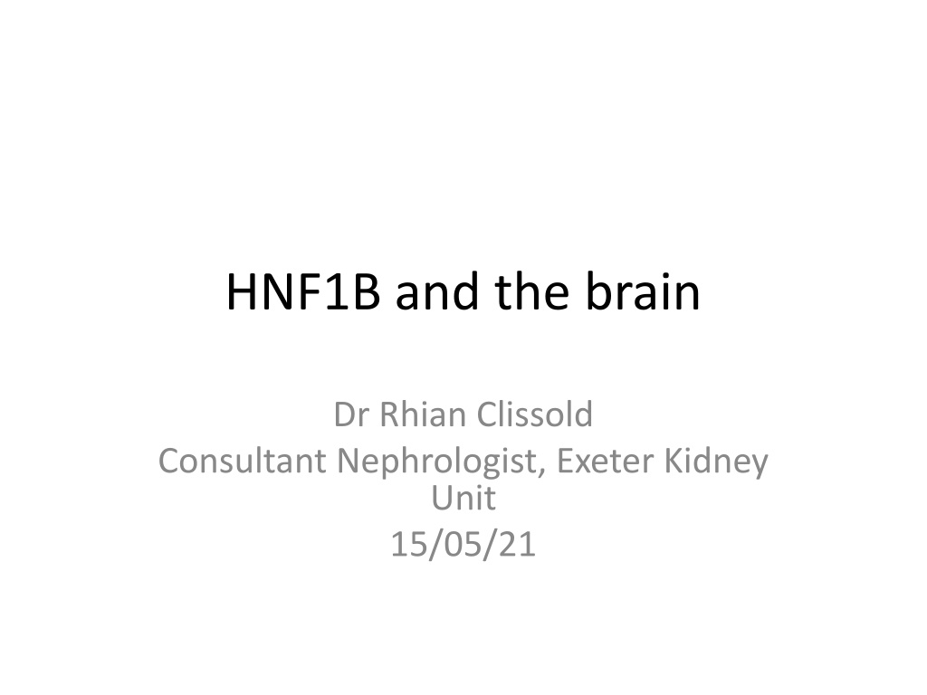 HNF1B and the brain Dr Rhian Clissold Consultant Nephrologist, Exeter Kidney Unit 15/05/21