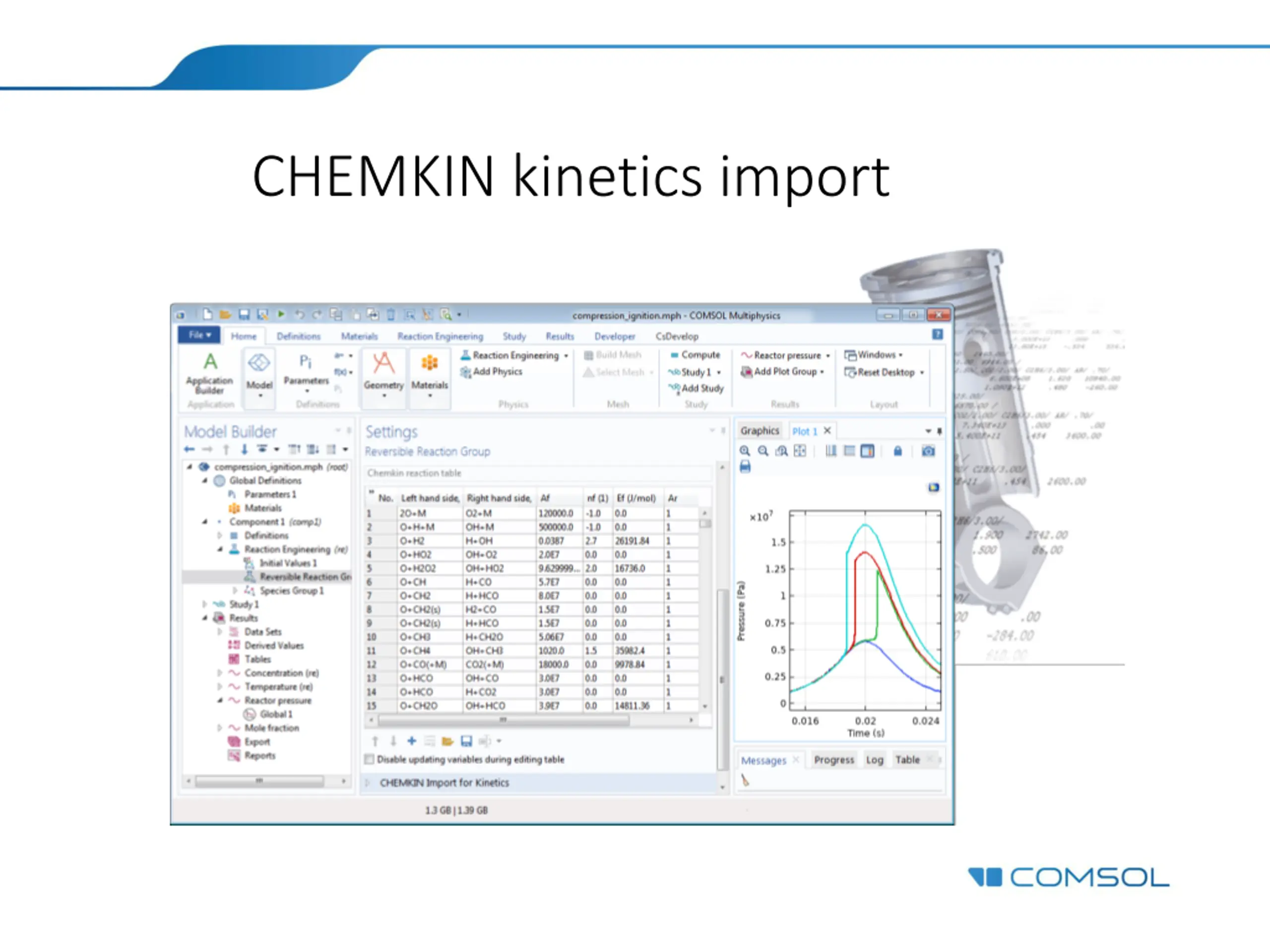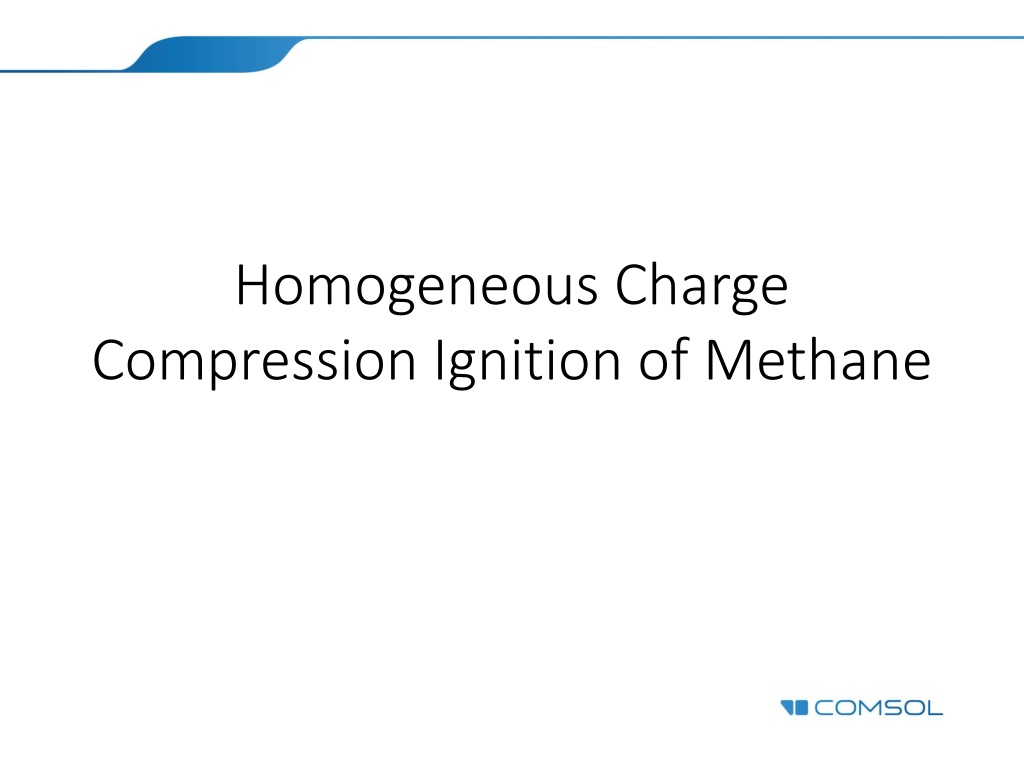 Homogeneous Charge Compression Ignition of Methane Alternative to traditional spark and compression-ignition engines Low combustion temperatures Low levels of NOx emissions Homogeneous nature of the fuel Low levels of particulate matter One important issue, timing of the ignition Examine the HCCI of methane Import data from CHEMKIN Kinetics and Thermo input files Calculate the mass and energy balances Solve for different initial temperatures Investigate the effect of Formaldehyde on the ignition