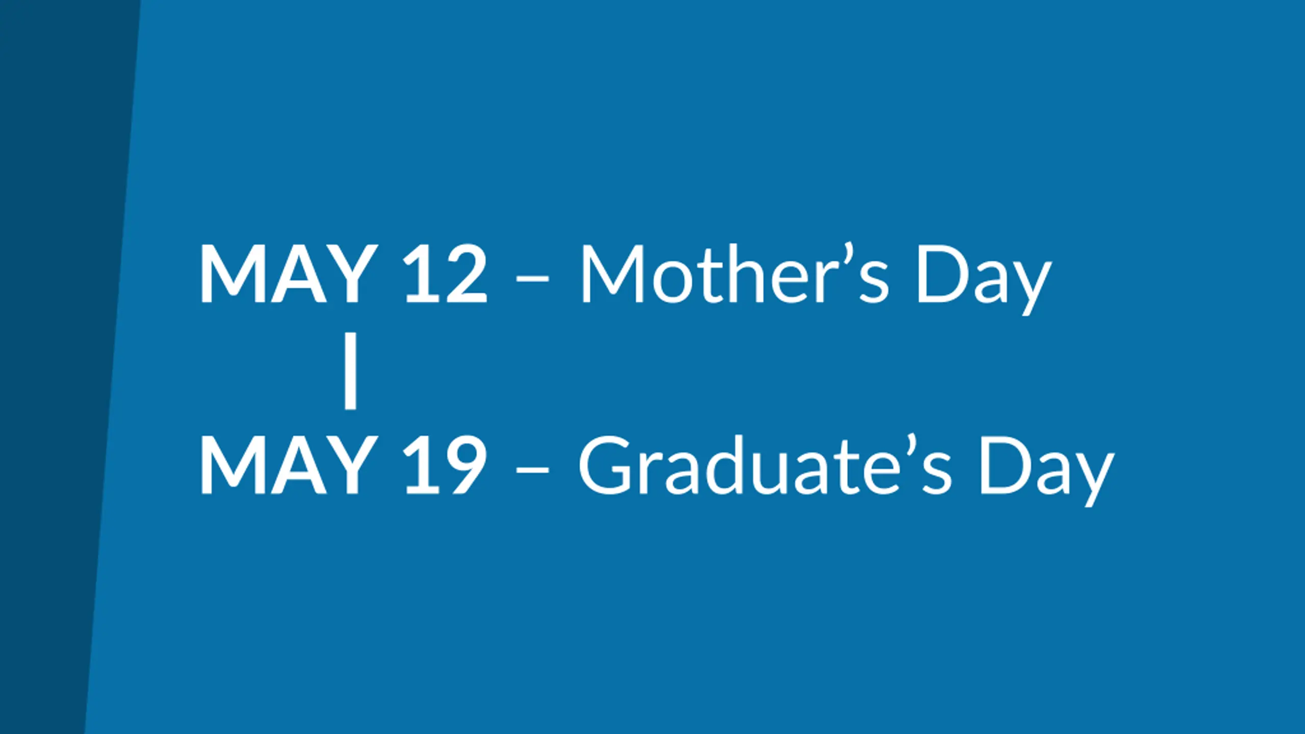 MAY 12 Mothers Day MAY 19 Graduate s Day