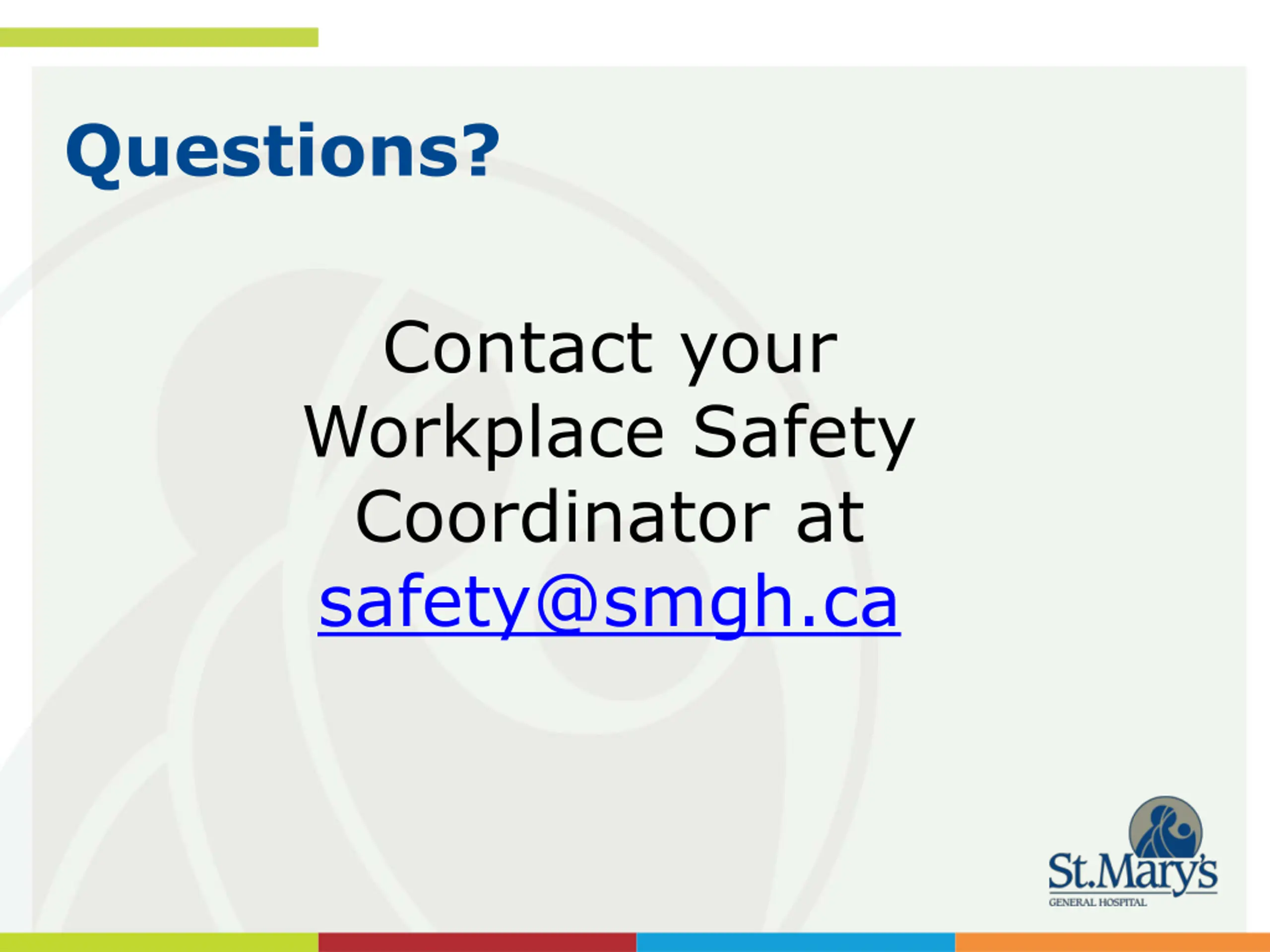 Questions? Contact your Workplace Safety Coordinator at safety@smgh.ca