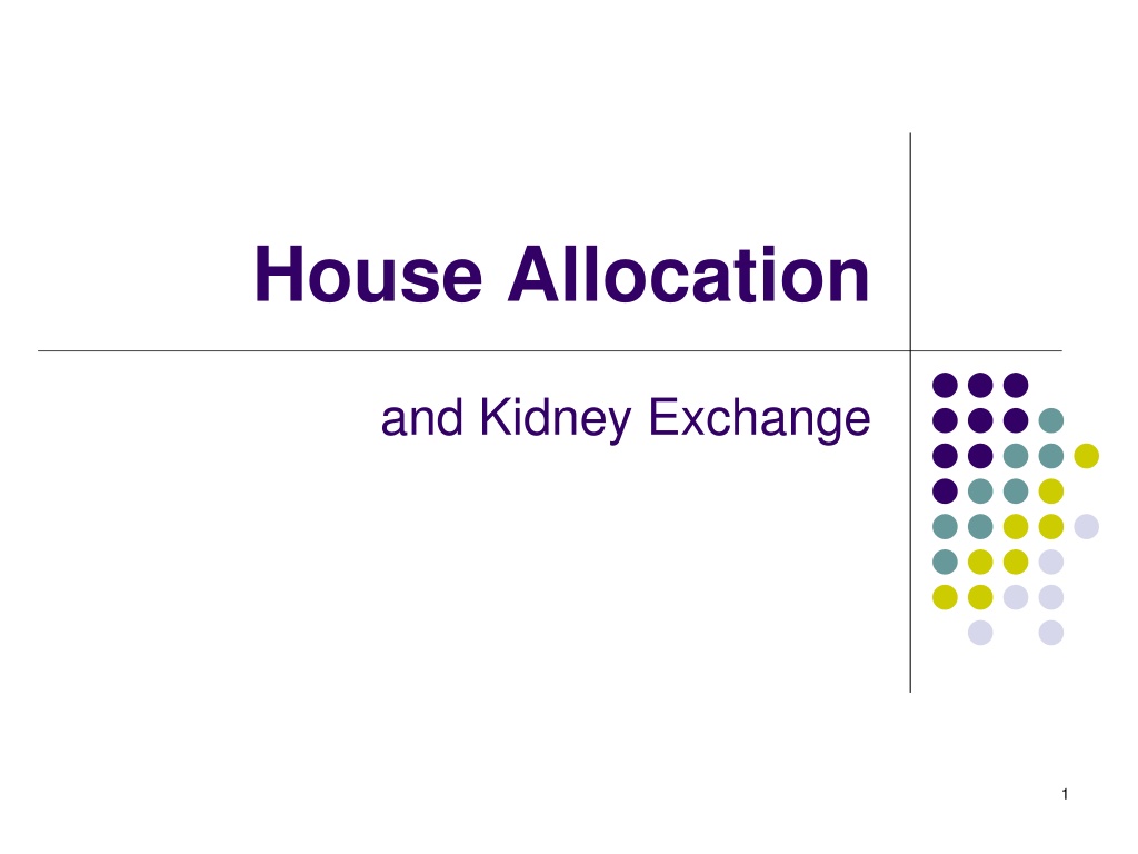 House allocation problems involve matching individuals to houses based on strict preferences. This involves strategies like Random Serial Dictatorship and Top Trading Cycles to ensure efficiency and fairness in the allocation process.