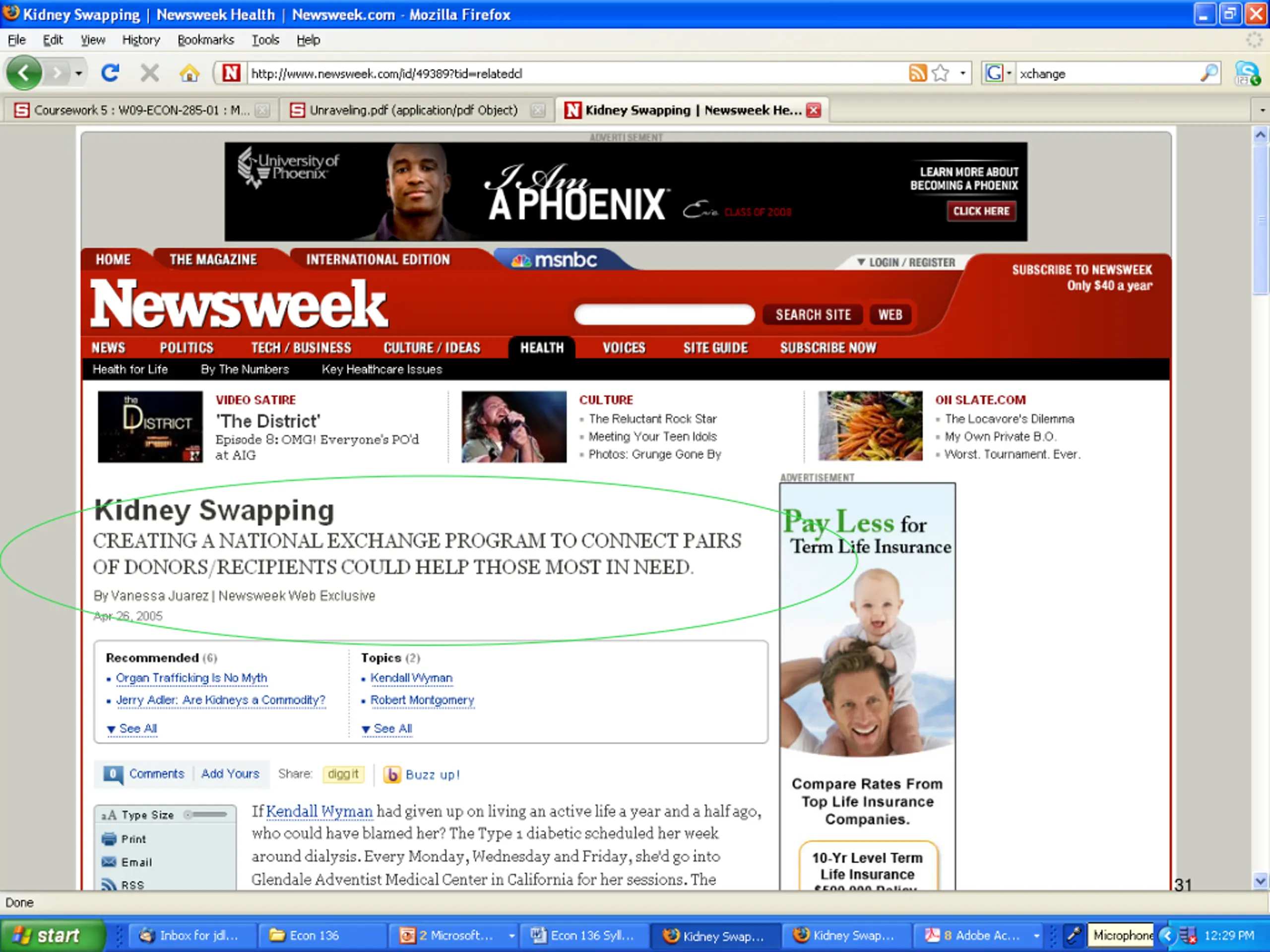 Resolving the shortage Buying and selling kidneys is illegal. Section 301 of National Organ Transplant Act it shall be unlawful for any person to knowingly acquire, receive or otherwise transfer any human organ for valuable consideration for use in human transplantation. There are probably ways to increase the supply of cadaveric kidneys (e.g. make donation the default). We re going to focus on ways to increase the supply of living donor kidneys. 27