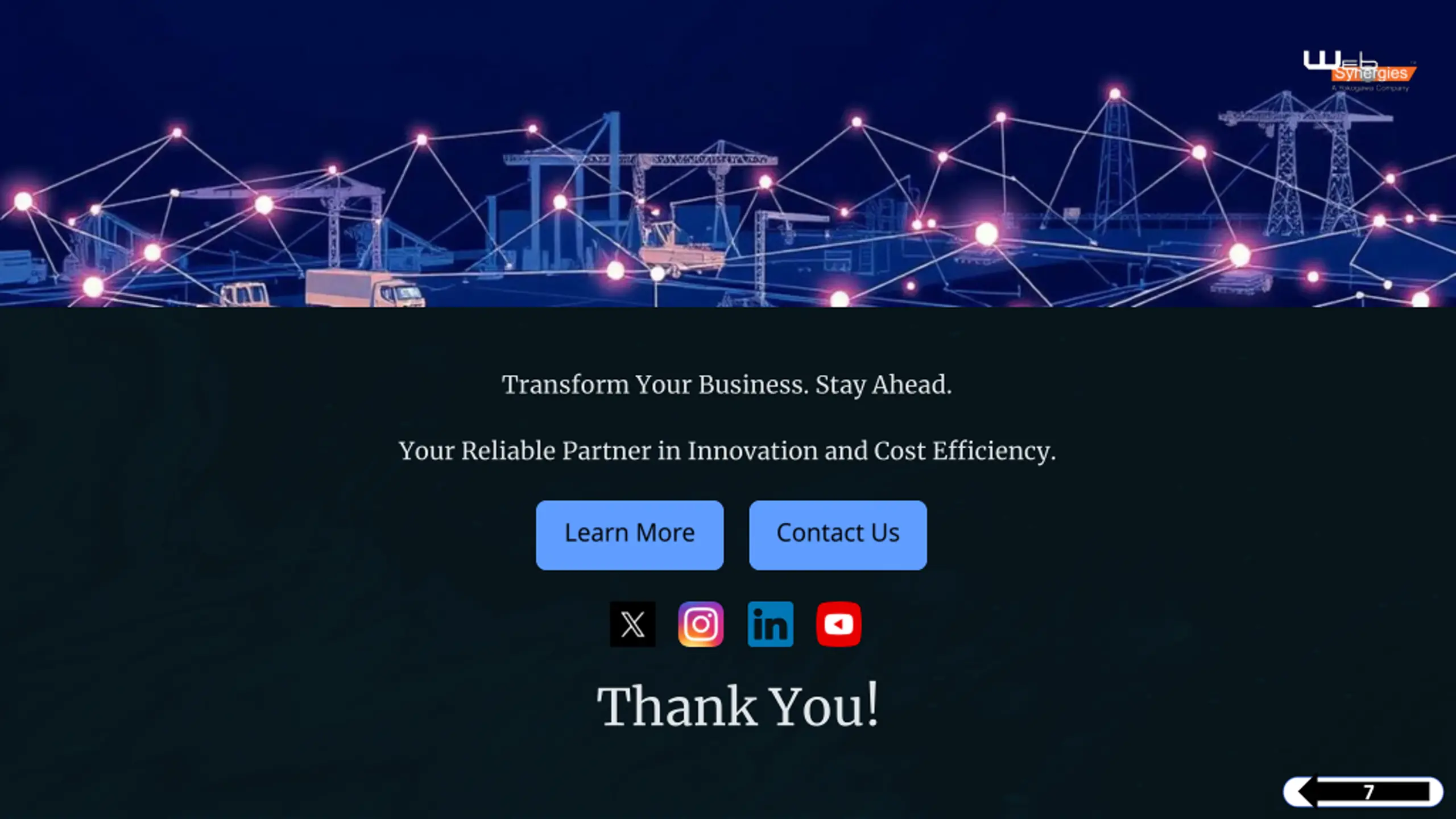 Transform Your Business. Stay Ahead. Your Reliable Partner in Innovation and Cost Efficiency. preencoded.png preencoded.png A white x on a black background https://www.instagram.com/websynergies/ https://www.linkedin.com/company/web-synergies A red and white logo Description automatically generated Description automatically generated Thank You! preencoded.png 7