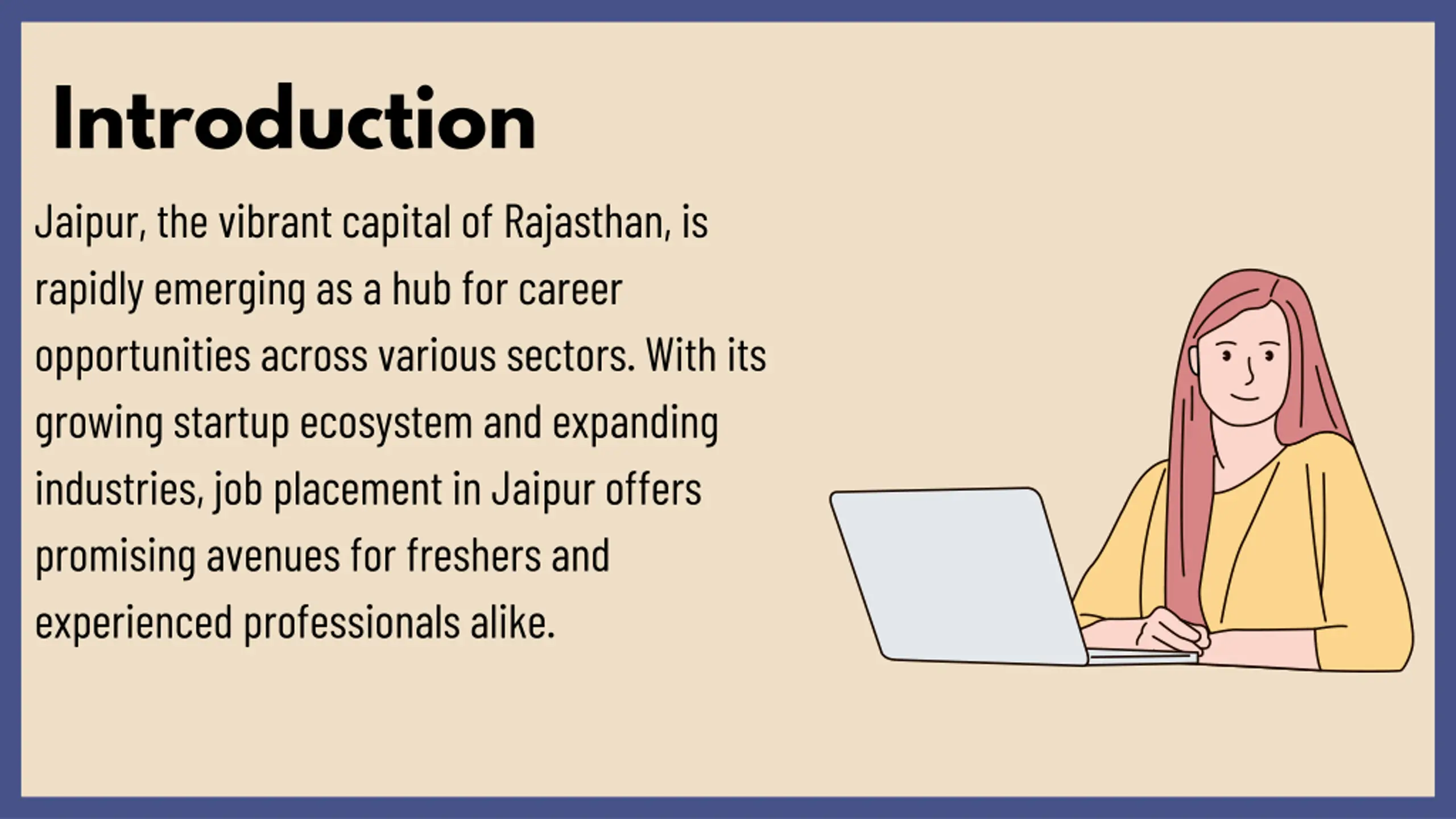 2. Introduction Jaipur, the vibrant capital of Rajasthan, is rapidly emerging as a hub for career opportunities across various sectors. With its growing startup ecosystem and expanding industries, job placement in Jaipur offers promising avenues for freshers and experienced professionals alike.