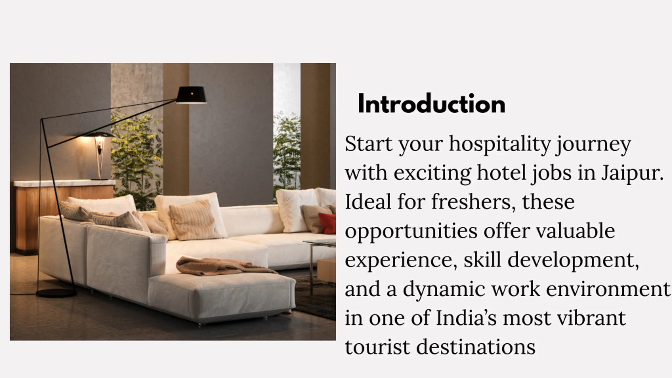 Thank You www.salarite.com Kickstart your hospitality career with hotel jobs in Jaipur for freshers. Explore top roles in heritage and luxury hotels through Salarite, your trusted job portal for guided placement.