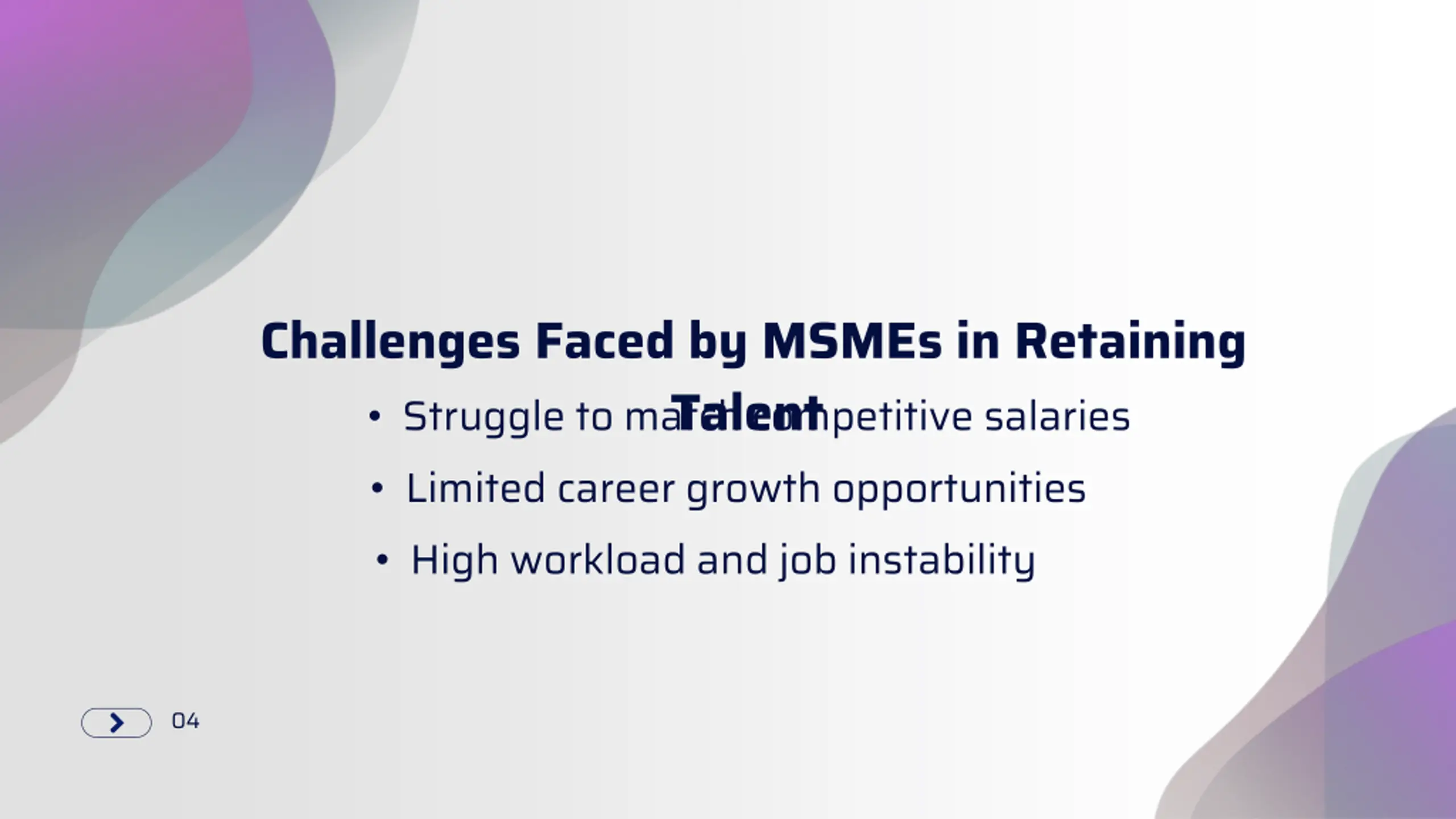 Challenges Faced by MSMEs in Retaining Talent Struggle to match competitive salaries Limited career growth opportunities High workload and job instability 04