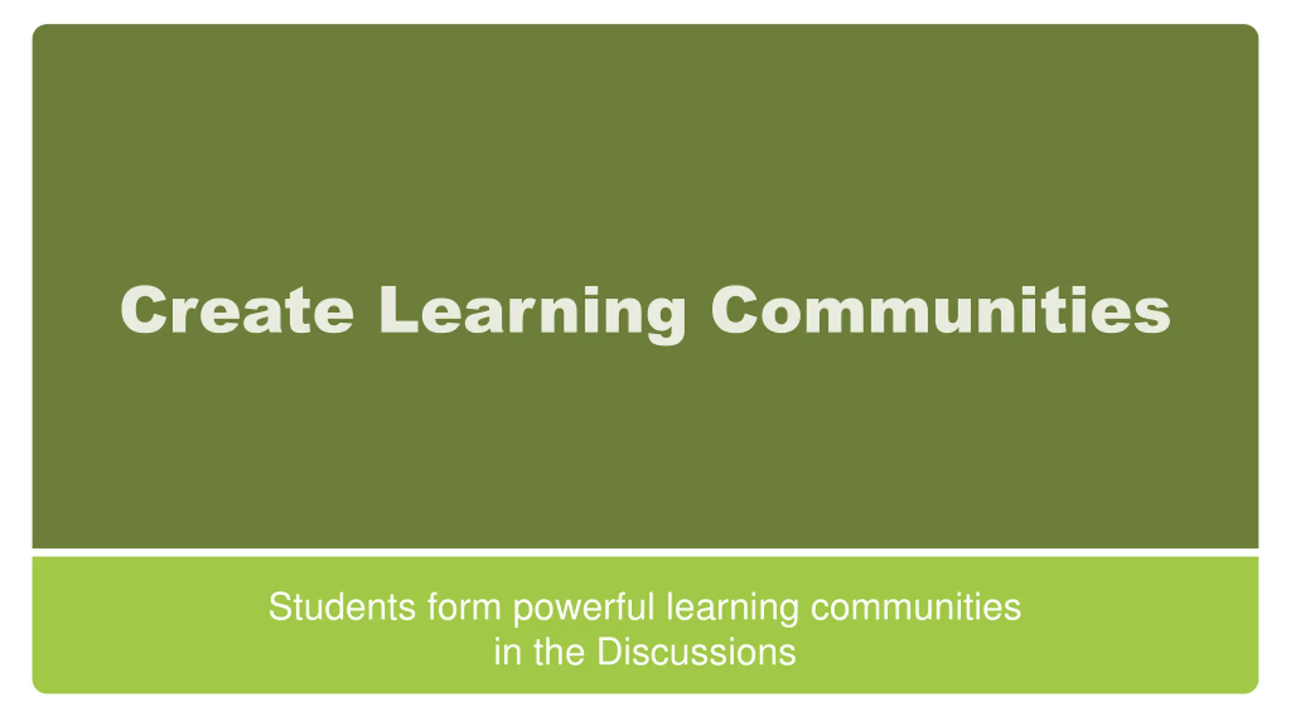 Create Learning Communities Students form powerful learning communities in the Discussions