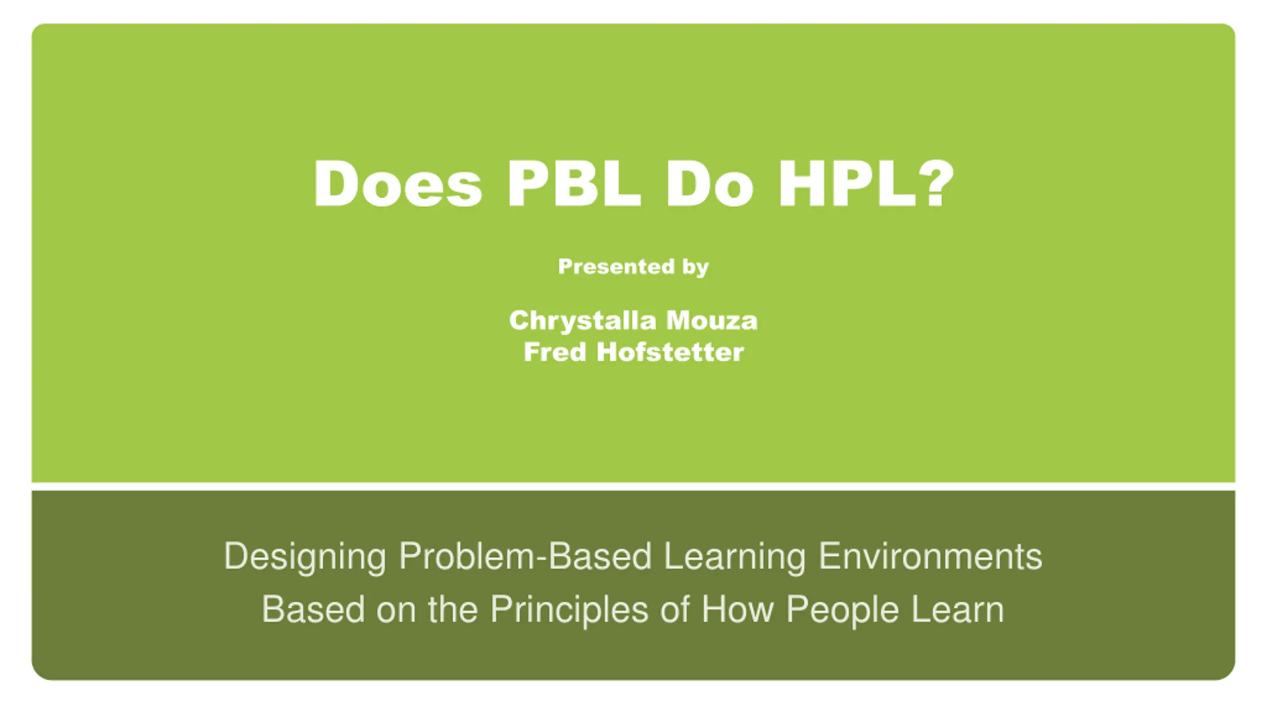 Does PBL Do HPL? Presented by Chrystalla Mouza Fred Hofstetter Designing Problem-Based Learning Environments Based on the Principles of How People Learn
