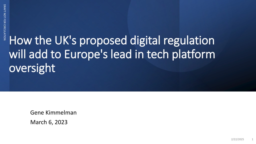 DRAFT NOT FOR CIRCULATION How the UK's proposed digital regulation How the UK's proposed digital regulation will add to Europe's lead in tech platform will add to Europe's lead in tech platform oversight oversight Gene Kimmelman March 6, 2023 2/22/2025 1