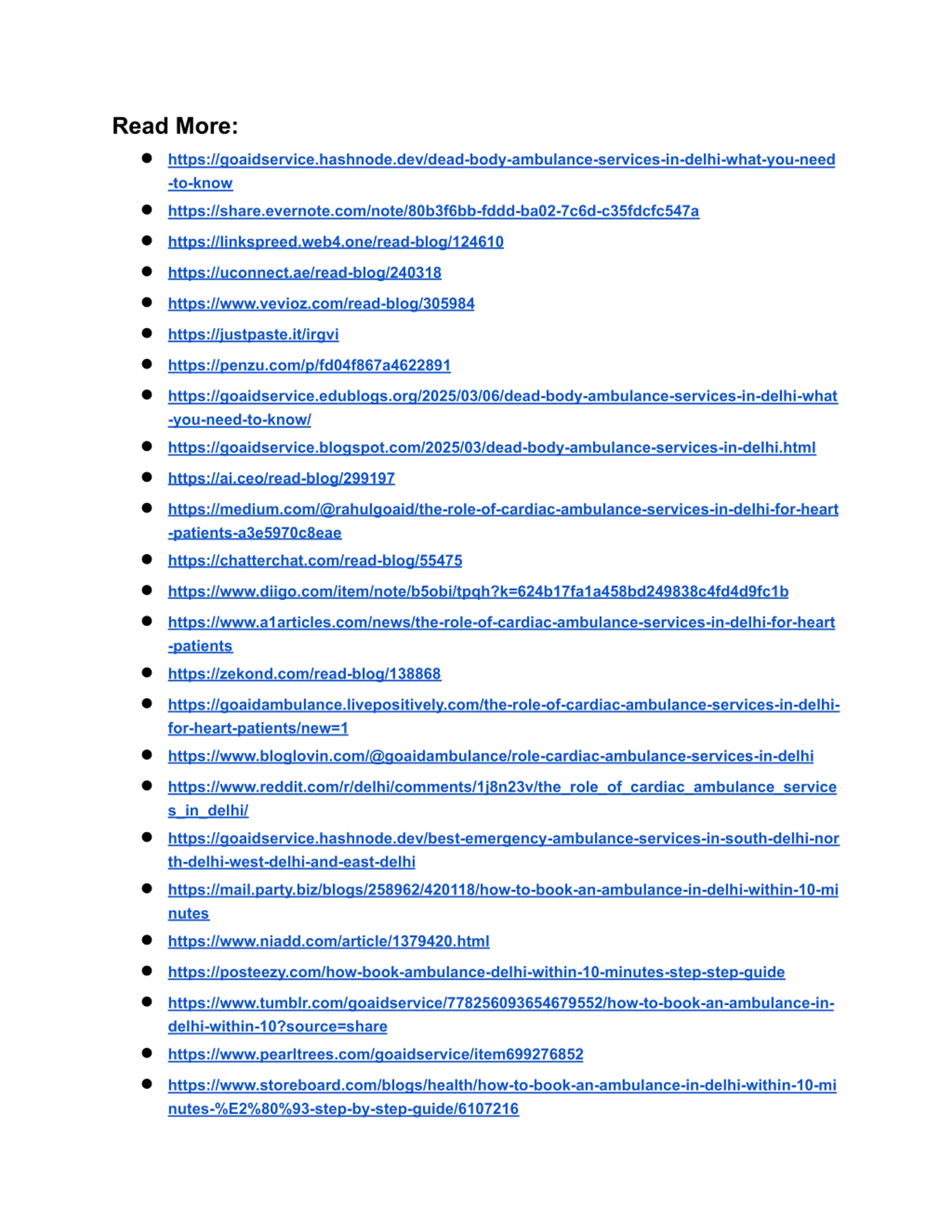 Read More: https://goaidservice.hashnode.dev/dead-body-ambulance-services-in-delhi-what-you-need -to-know https://share.evernote.com/note/80b3f6bb-fddd-ba02-7c6d-c35fdcfc547a https://linkspreed.web4.one/read-blog/124610 https://uconnect.ae/read-blog/240318 https://www.vevioz.com/read-blog/305984 https://justpaste.it/irgvi https://penzu.com/p/fd04f867a4622891 https://goaidservice.edublogs.org/2025/03/06/dead-body-ambulance-services-in-delhi-what -you-need-to-know/ https://goaidservice.blogspot.com/2025/03/dead-body-ambulance-services-in-delhi.html https://ai.ceo/read-blog/299197 https://medium.com/@rahulgoaid/the-role-of-cardiac-ambulance-services-in-delhi-for-heart -patients-a3e5970c8eae https://chatterchat.com/read-blog/55475 https://www.diigo.com/item/note/b5obi/tpqh?k=624b17fa1a458bd249838c4fd4d9fc1b https://www.a1articles.com/news/the-role-of-cardiac-ambulance-services-in-delhi-for-heart -patients https://zekond.com/read-blog/138868 https://goaidambulance.livepositively.com/the-role-of-cardiac-ambulance-services-in-delhi- for-heart-patients/new=1 https://www.bloglovin.com/@goaidambulance/role-cardiac-ambulance-services-in-delhi https://www.reddit.com/r/delhi/comments/1j8n23v/the_role_of_cardiac_ambulance_service s_in_delhi/ https://goaidservice.hashnode.dev/best-emergency-ambulance-services-in-south-delhi-nor th-delhi-west-delhi-and-east-delhi https://mail.party.biz/blogs/258962/420118/how-to-book-an-ambulance-in-delhi-within-10-mi nutes https://www.niadd.com/article/1379420.html https://posteezy.com/how-book-ambulance-delhi-within-10-minutes-step-step-guide https://www.tumblr.com/goaidservice/778256093654679552/how-to-book-an-ambulance-in- delhi-within-10?source=share https://www.pearltrees.com/goaidservice/item699276852 https://www.storeboard.com/blogs/health/how-to-book-an-ambulance-in-delhi-within-10-mi nutes-%E2%80%93-step-by-step-guide/6107216