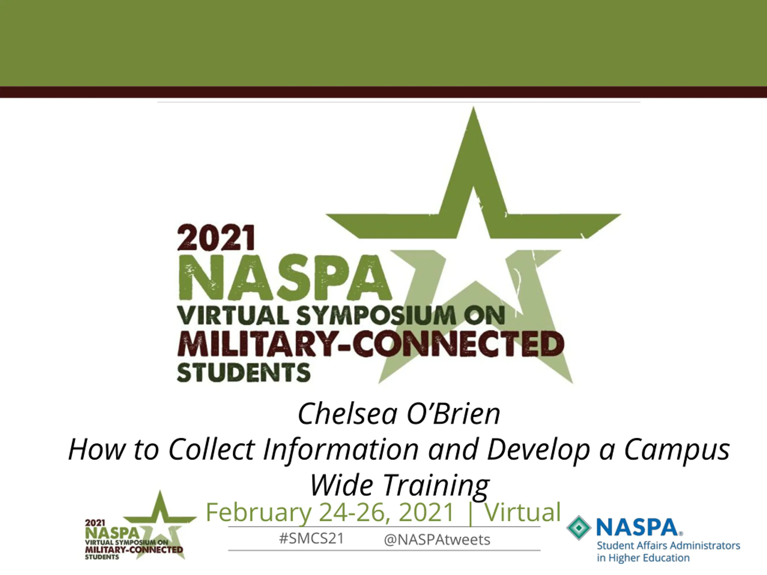 Chelsea OBrien How to Collect Information and Develop a Campus Wide Training February 24-26, 2021 | Virtual #SMCS21 @NASPAtweets