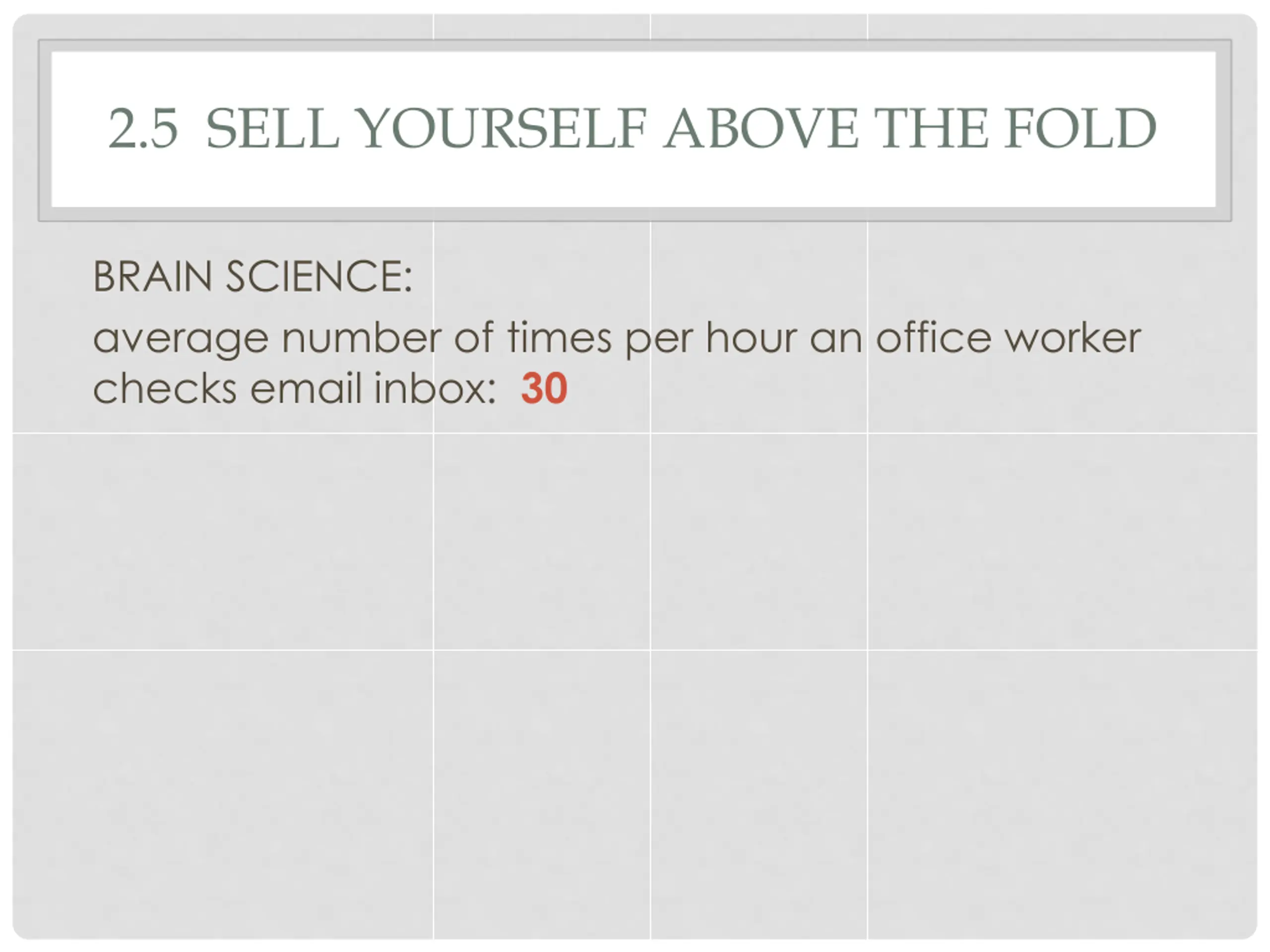 2.5 SELL YOURSELF ABOVE THE FOLD BRAIN SCIENCE: average number of times per hour an office worker checks email inbox: 30
