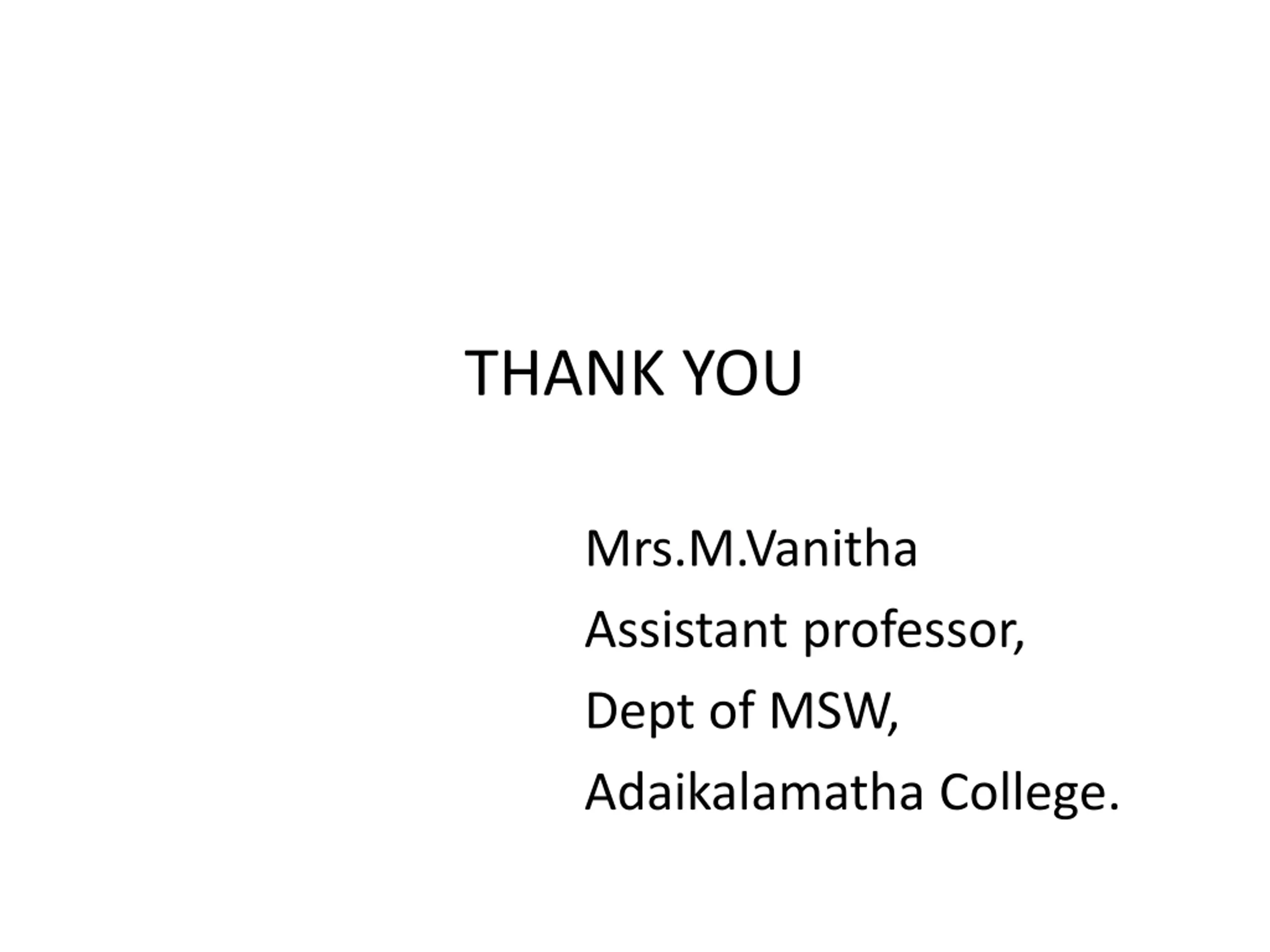 THANK YOU Mrs.M.Vanitha Assistant professor, Dept of MSW, Adaikalamatha College.