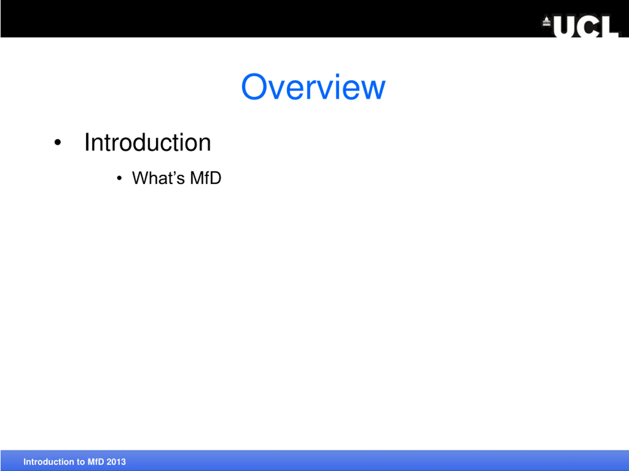 Overview Introduction What s MfD Introduction to MfD 2013