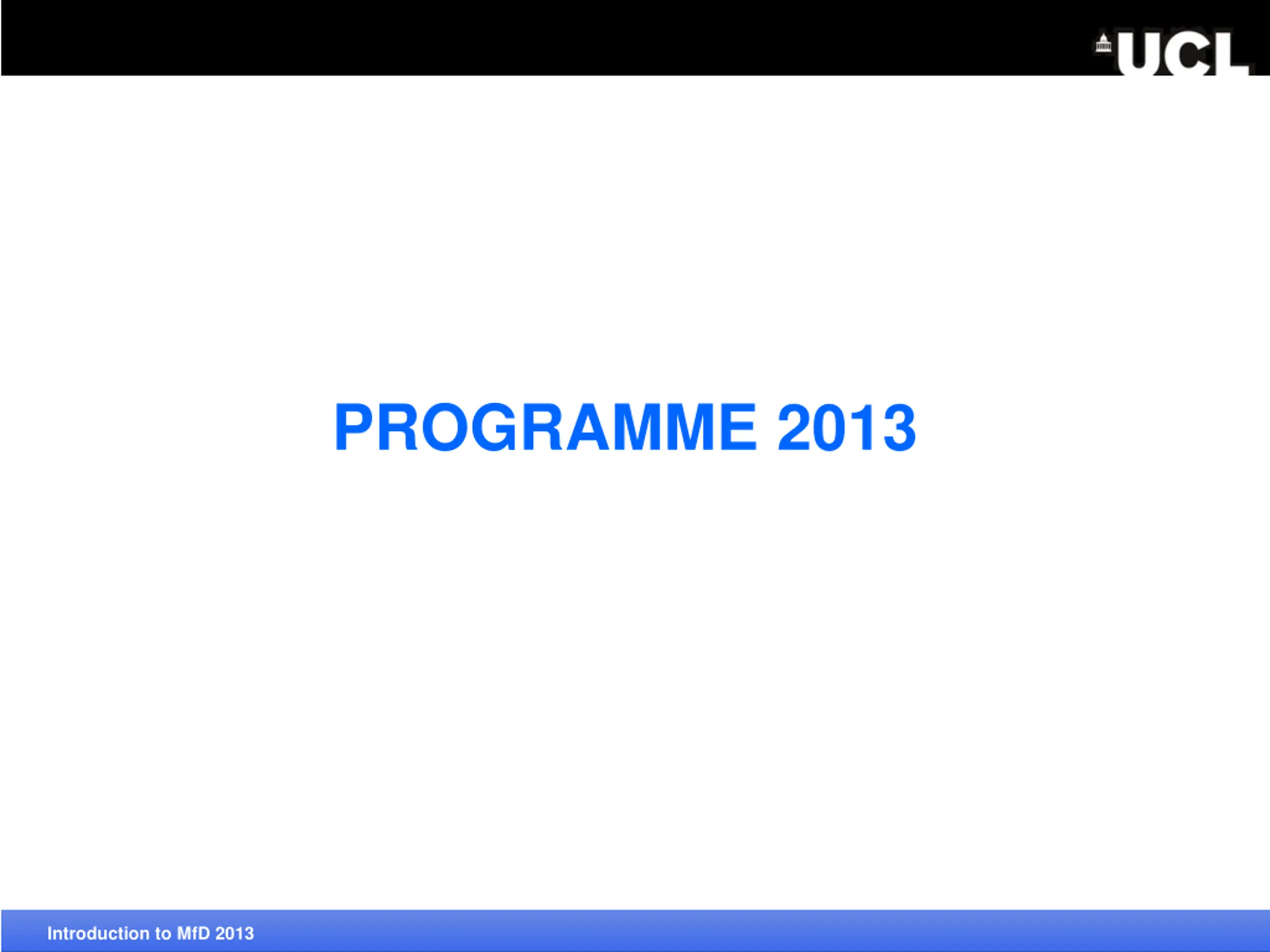 PROGRAMME 2013 Introduction to MfD 2013