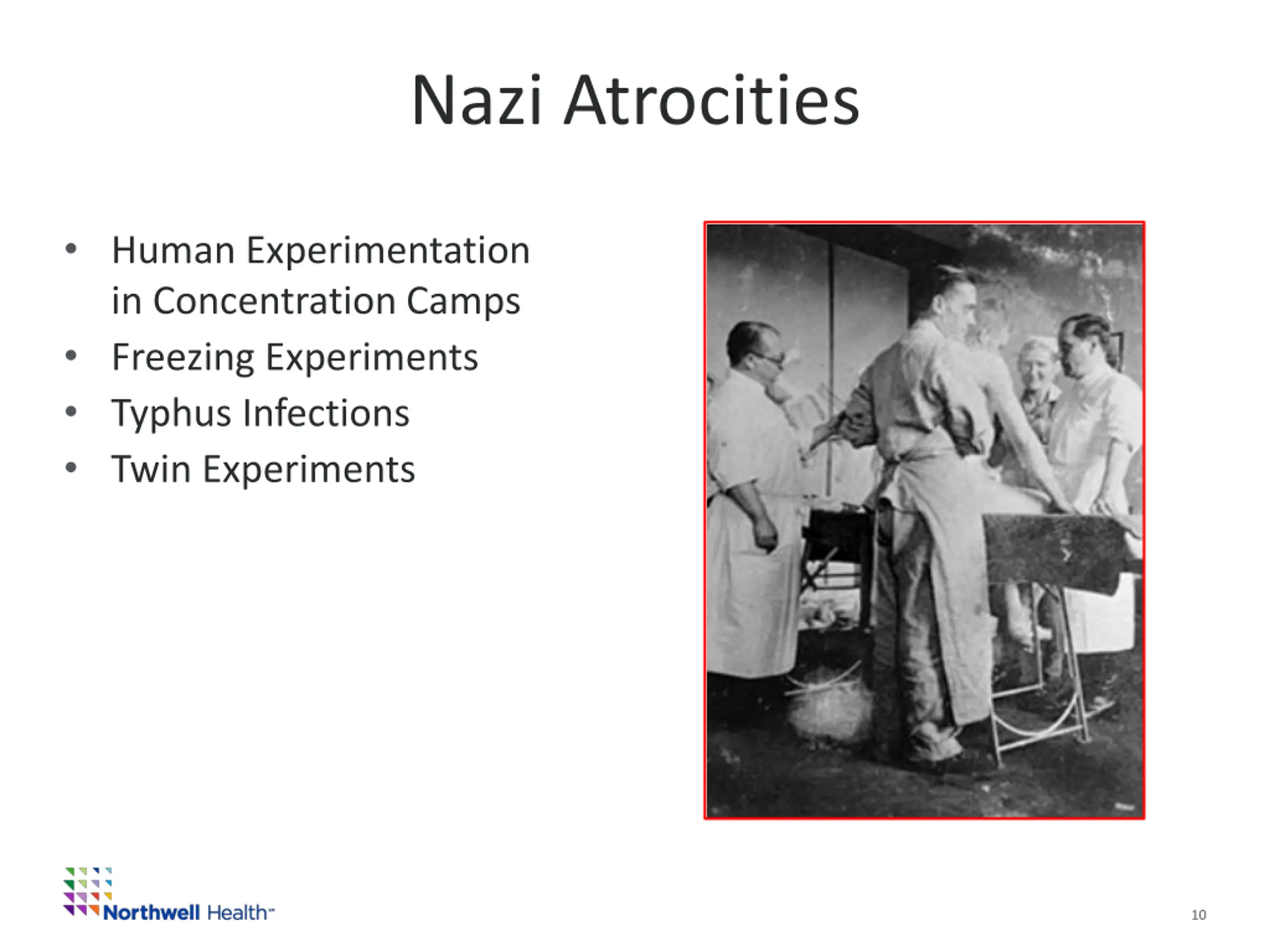 Nazi Atrocities Human Experimentation in Concentration Camps Freezing Experiments Typhus Infections Twin Experiments 10