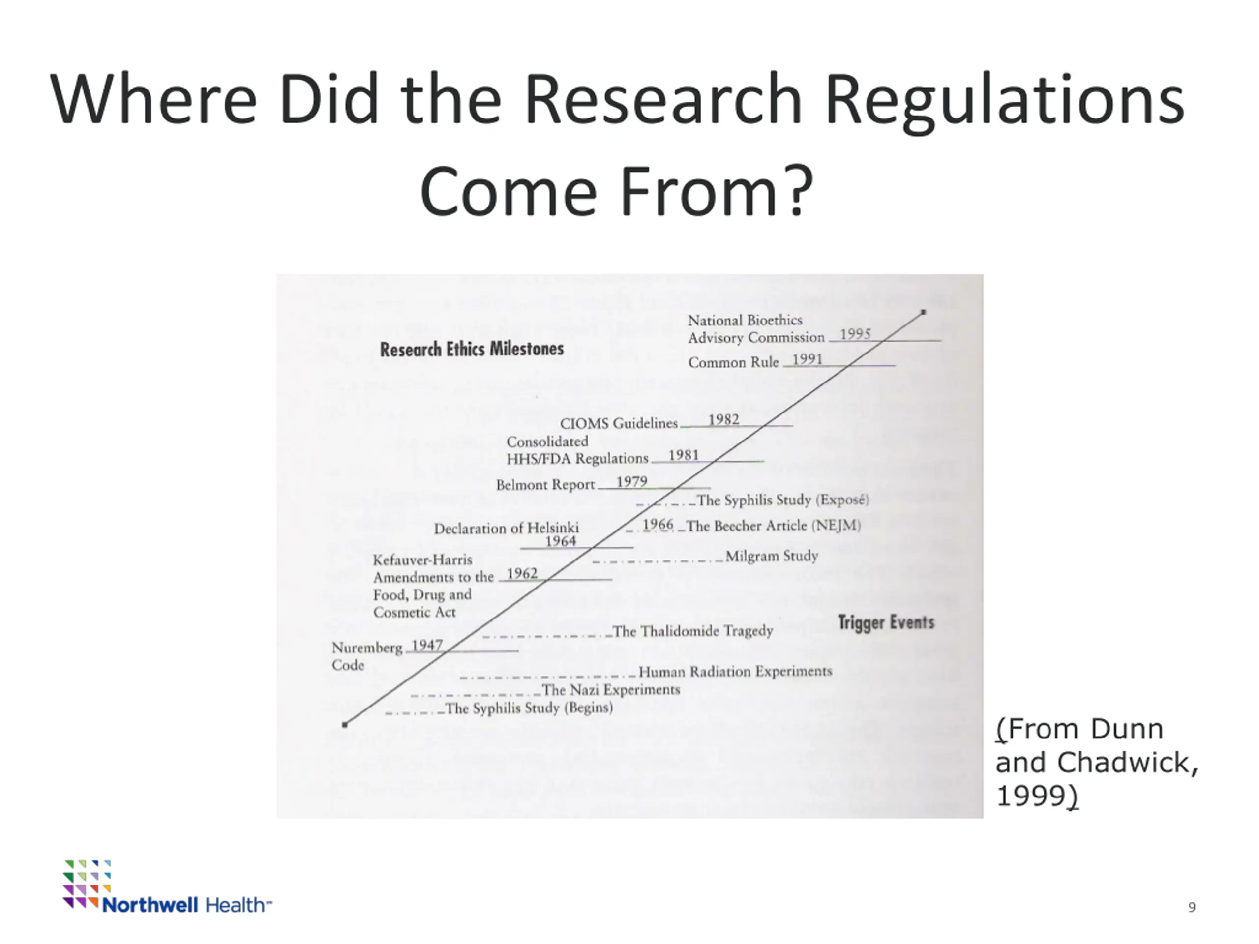 Where Did the Research Regulations Come From? (From Dunn and Chadwick, 1999) 9