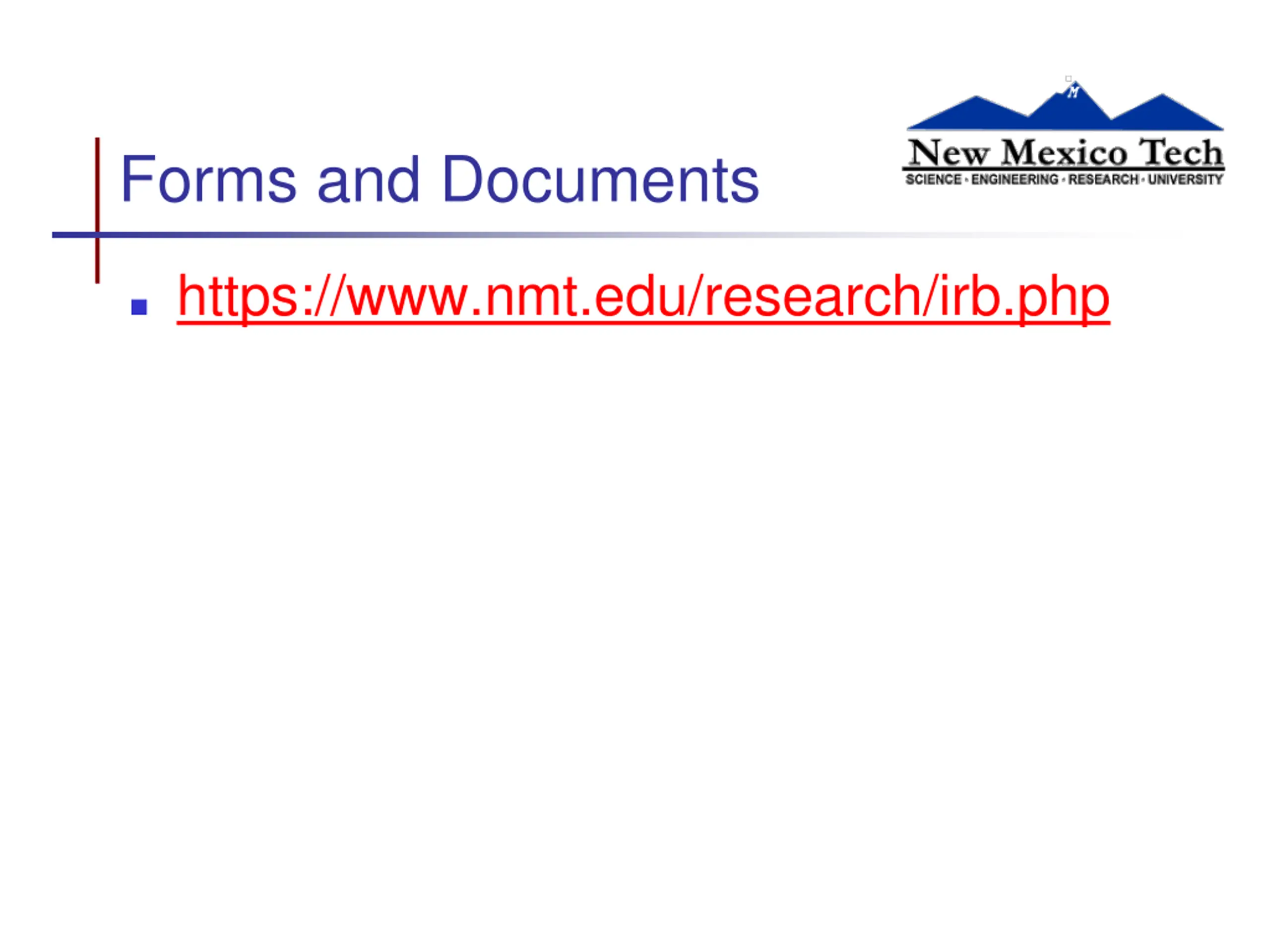 Forms and Documents https://www.nmt.edu/research/irb.php