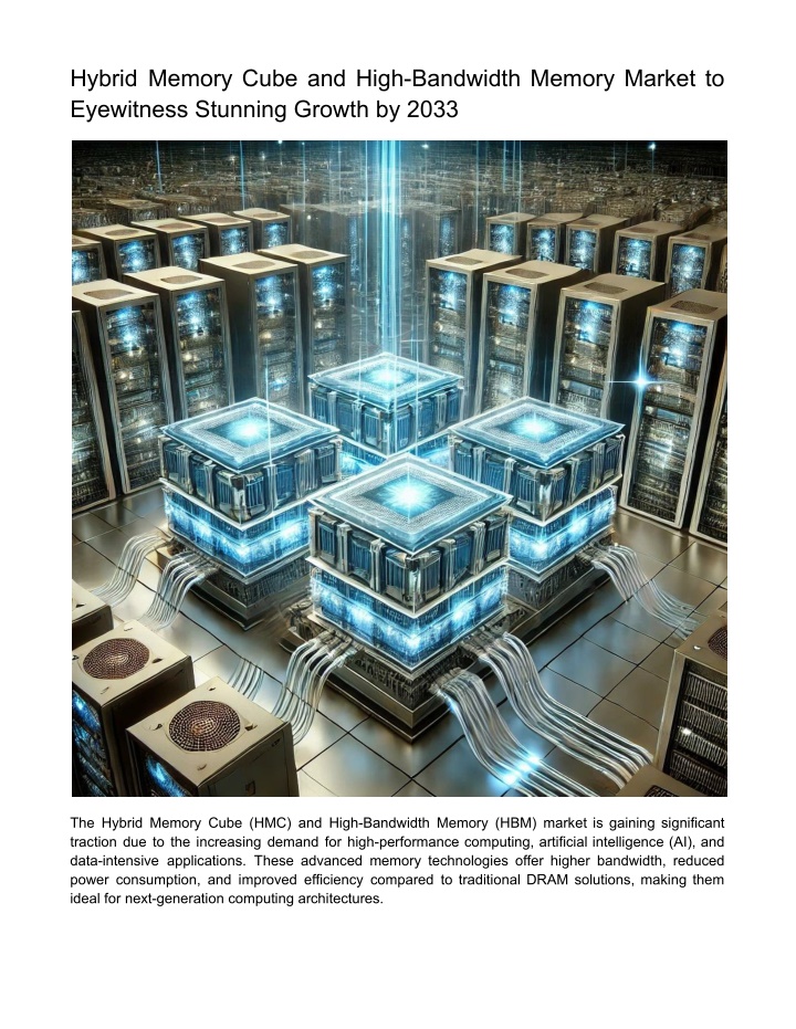 Hybrid Memory Cube and High-Bandwidth Memory Market to Eyewitness Stunning Growth by 2033 The Hybrid Memory Cube (HMC) and High-Bandwidth Memory (HBM) market is gaining significant traction due to the increasing demand for high-performance computing, artificial intelligence (AI), and data-intensive applications. These advanced memory technologies offer higher bandwidth, reduced power consumption, and improved efficiency compared to traditional DRAM solutions, making them ideal for next-generation computing architectures.
