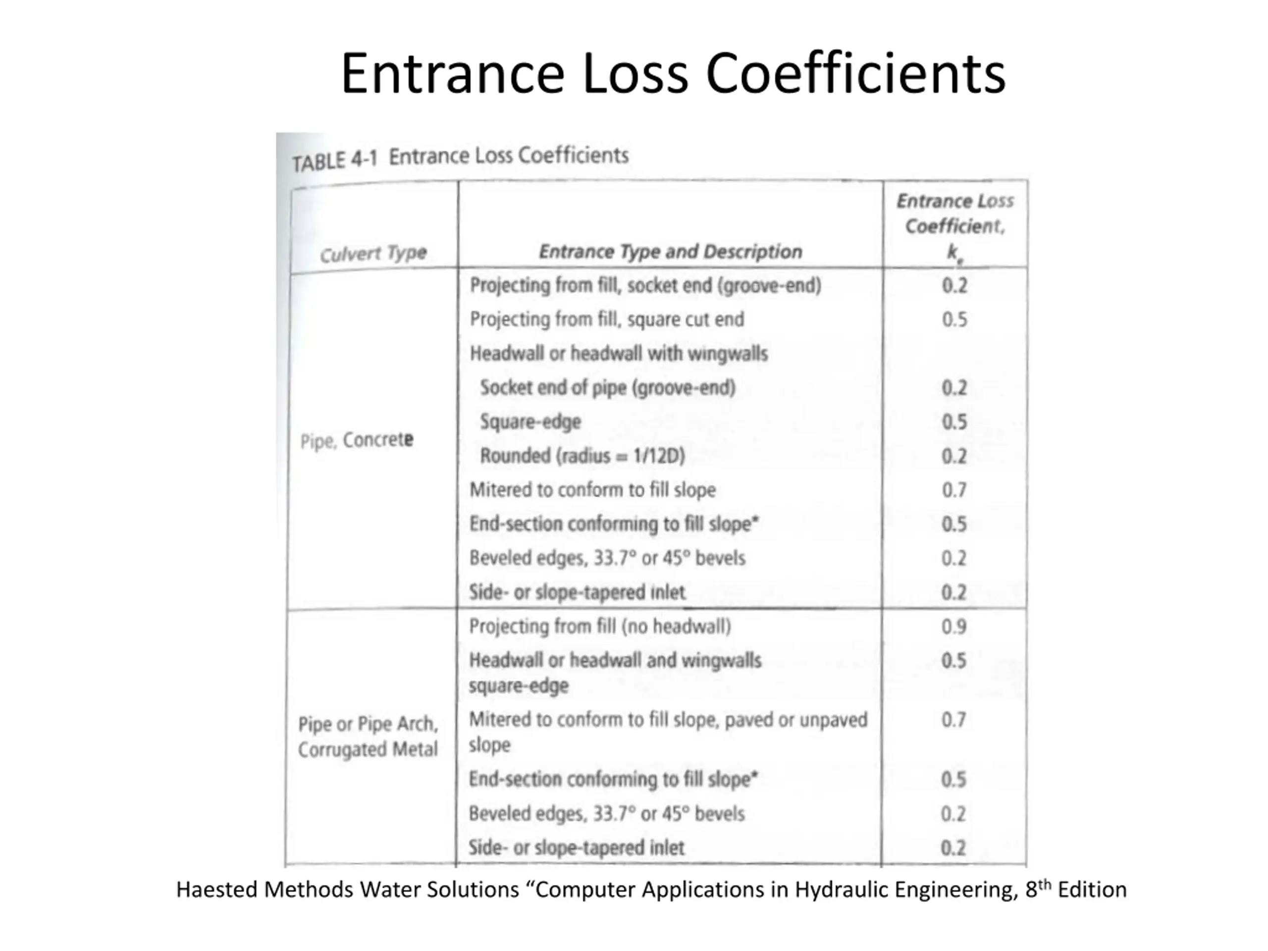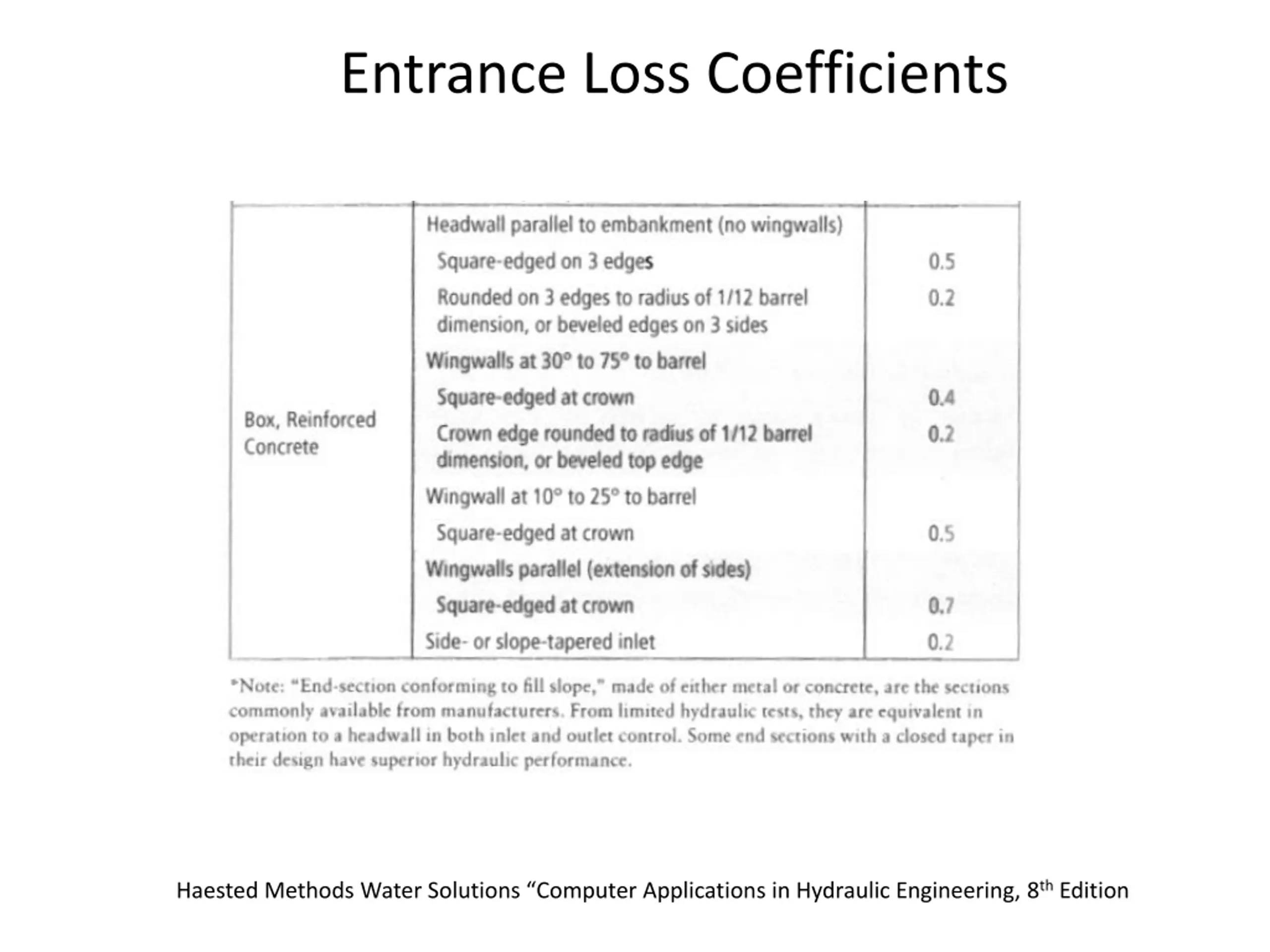 Entrance Loss Coefficients Haested Methods Water Solutions Computer Applications in Hydraulic Engineering, 8th Edition
