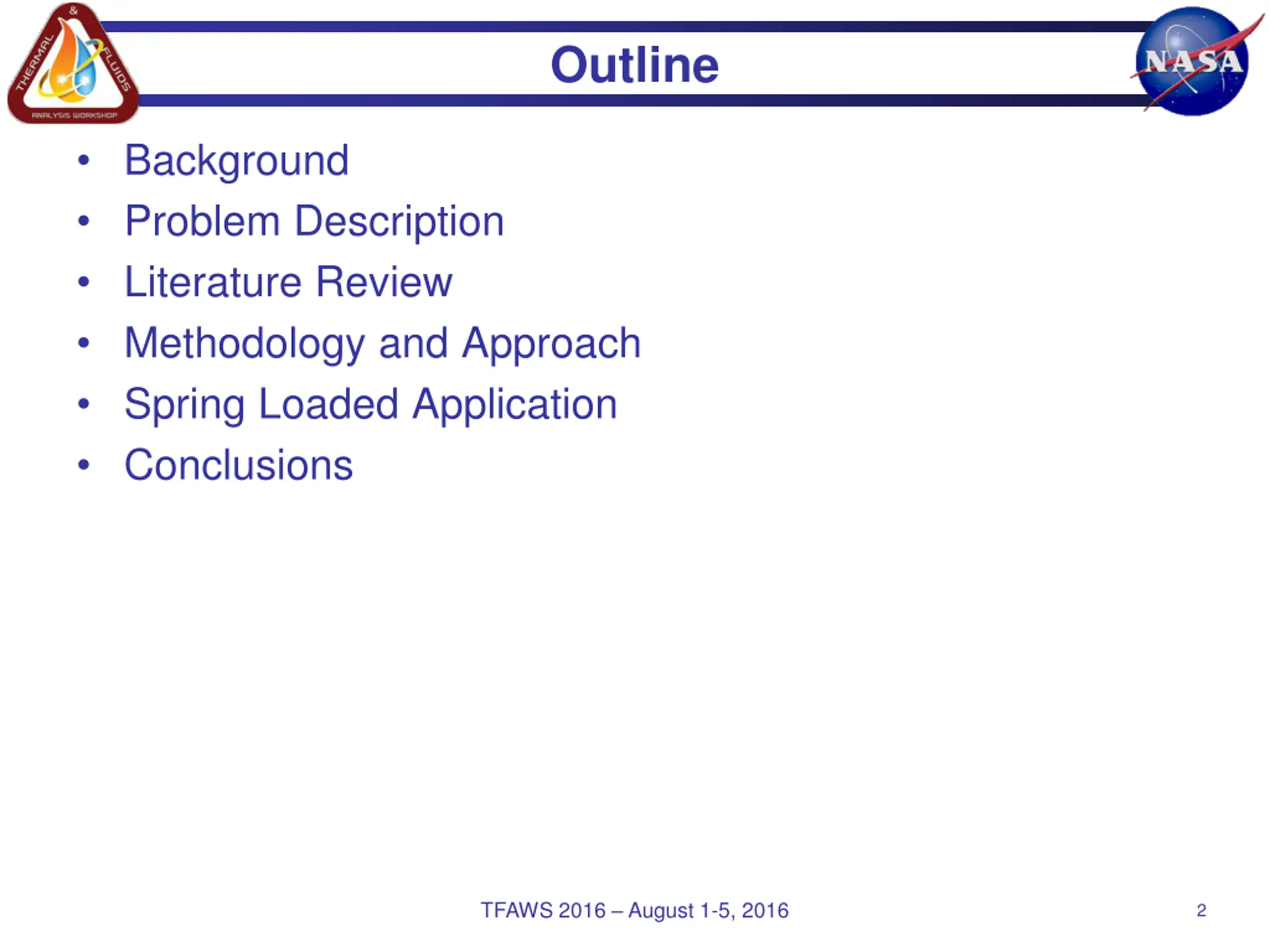 Outline Background Problem Description Literature Review Methodology and Approach Spring Loaded Application Conclusions TFAWS 2016 August 1-5, 2016 2