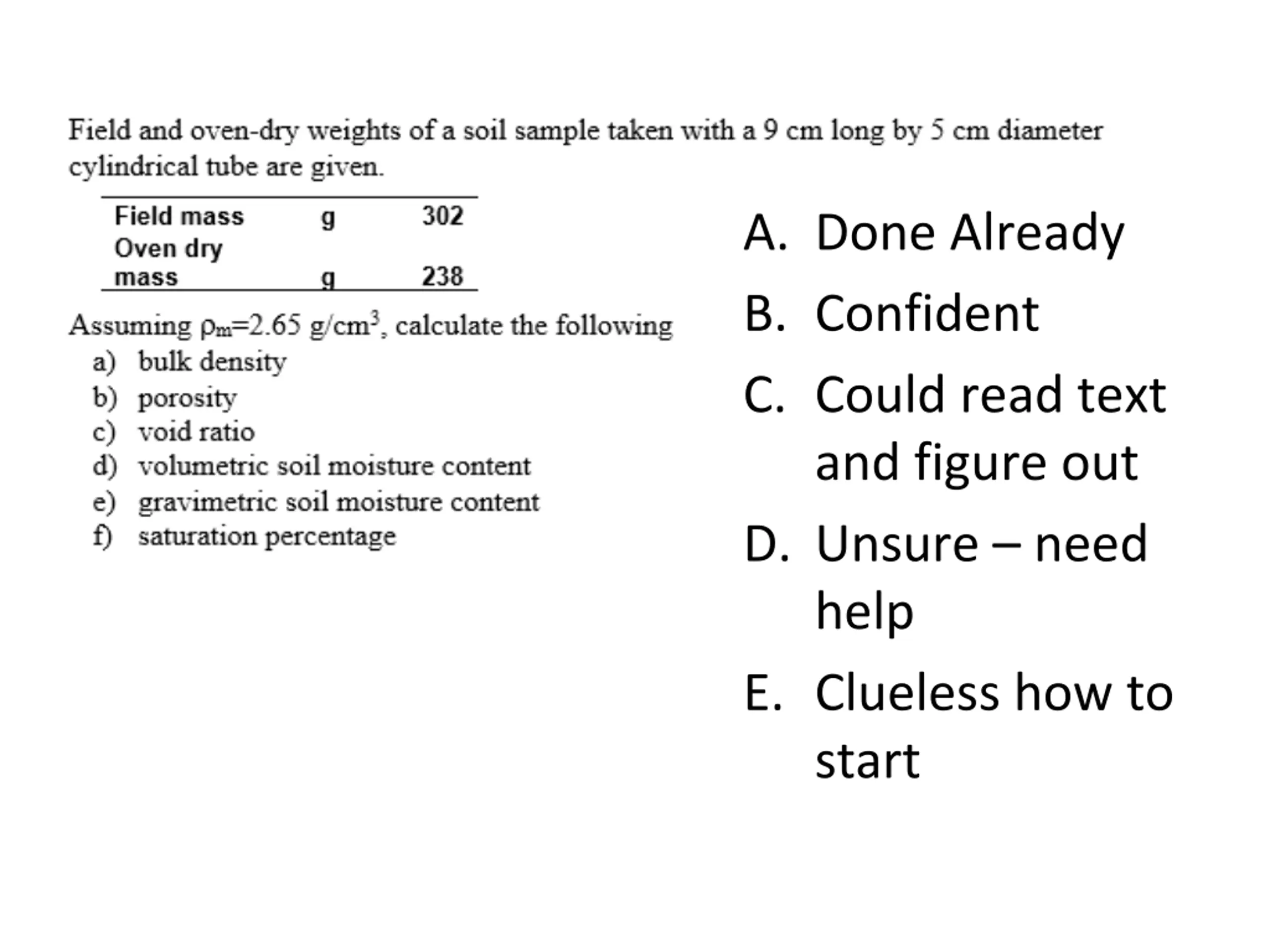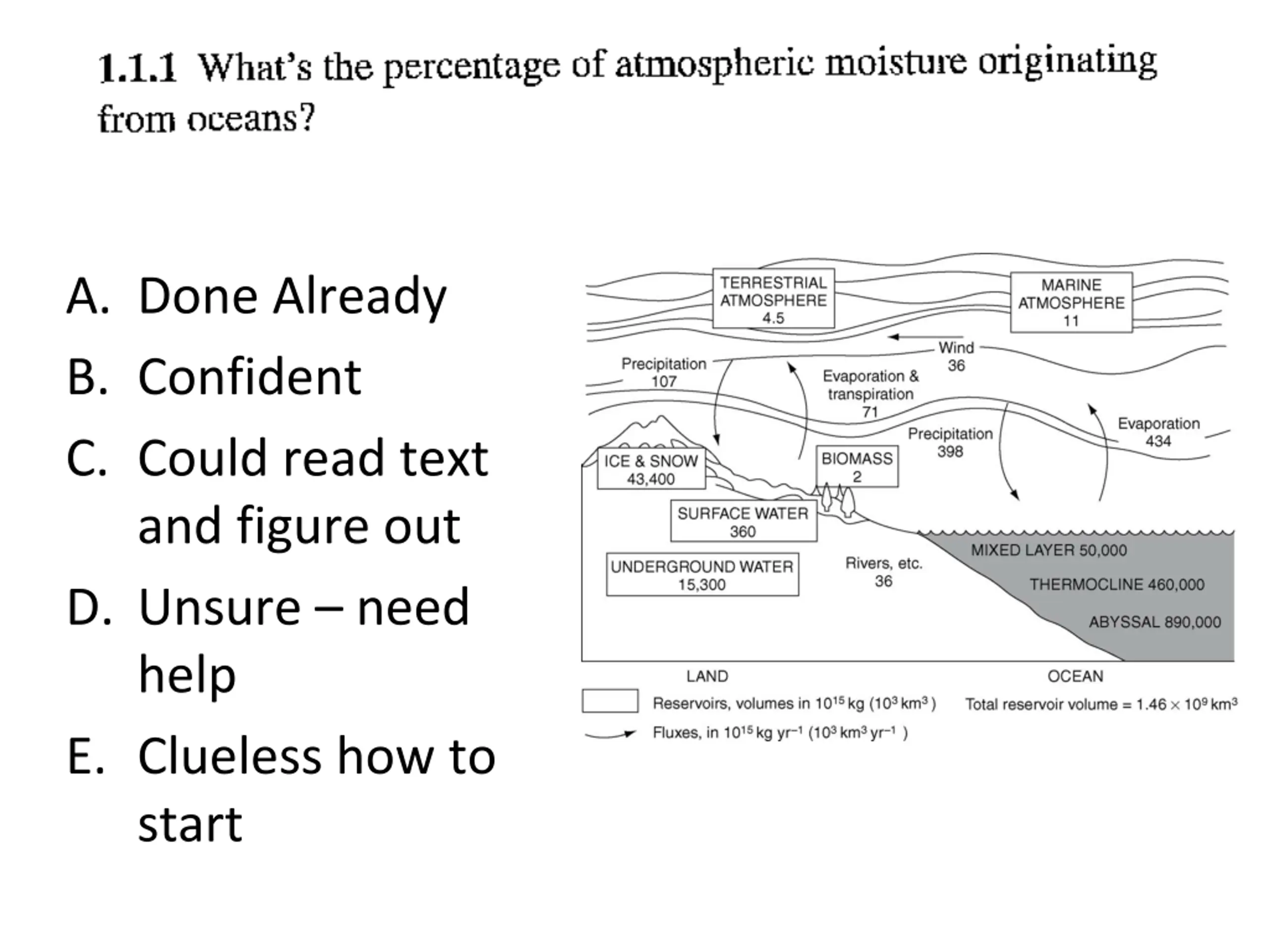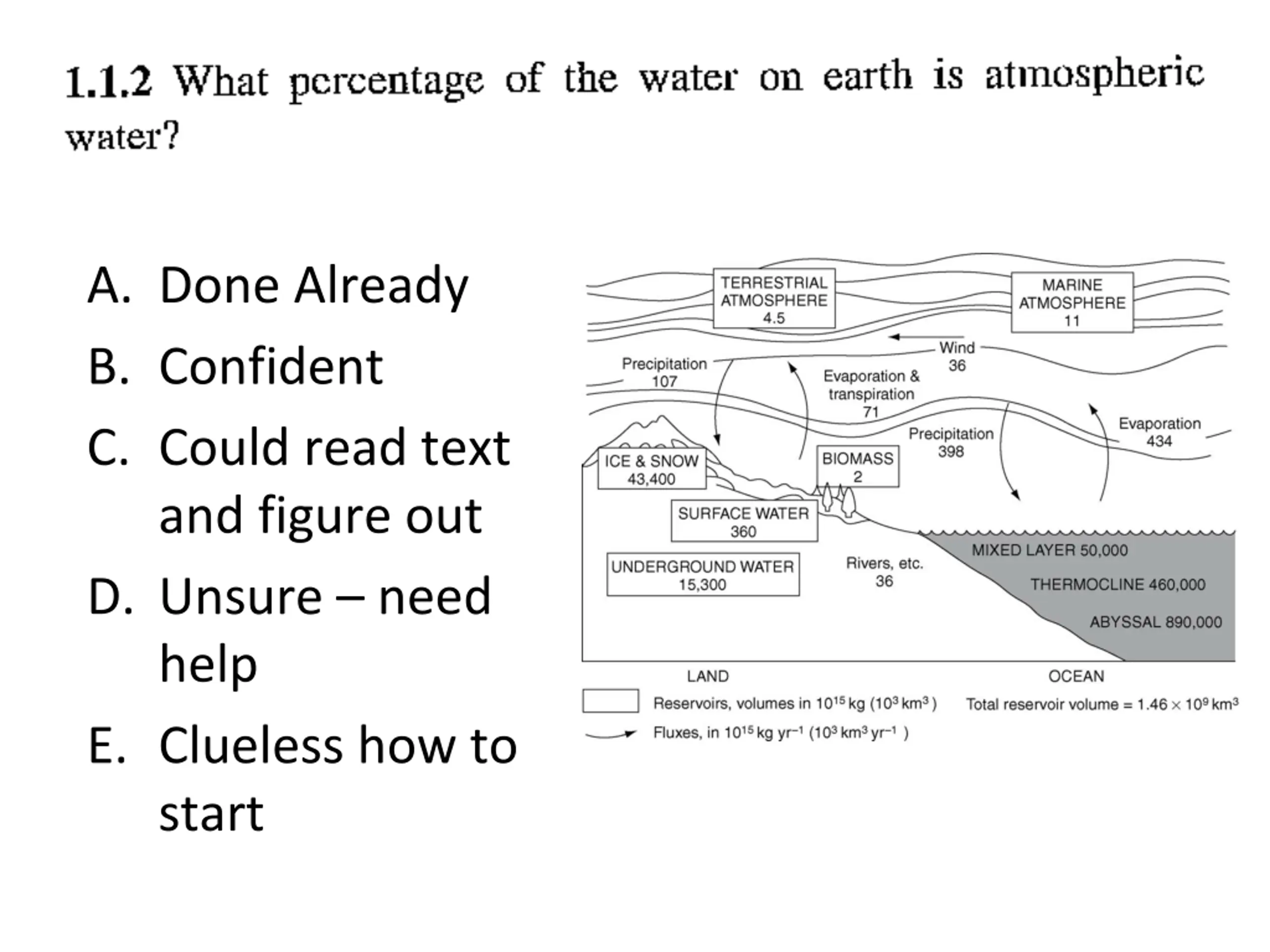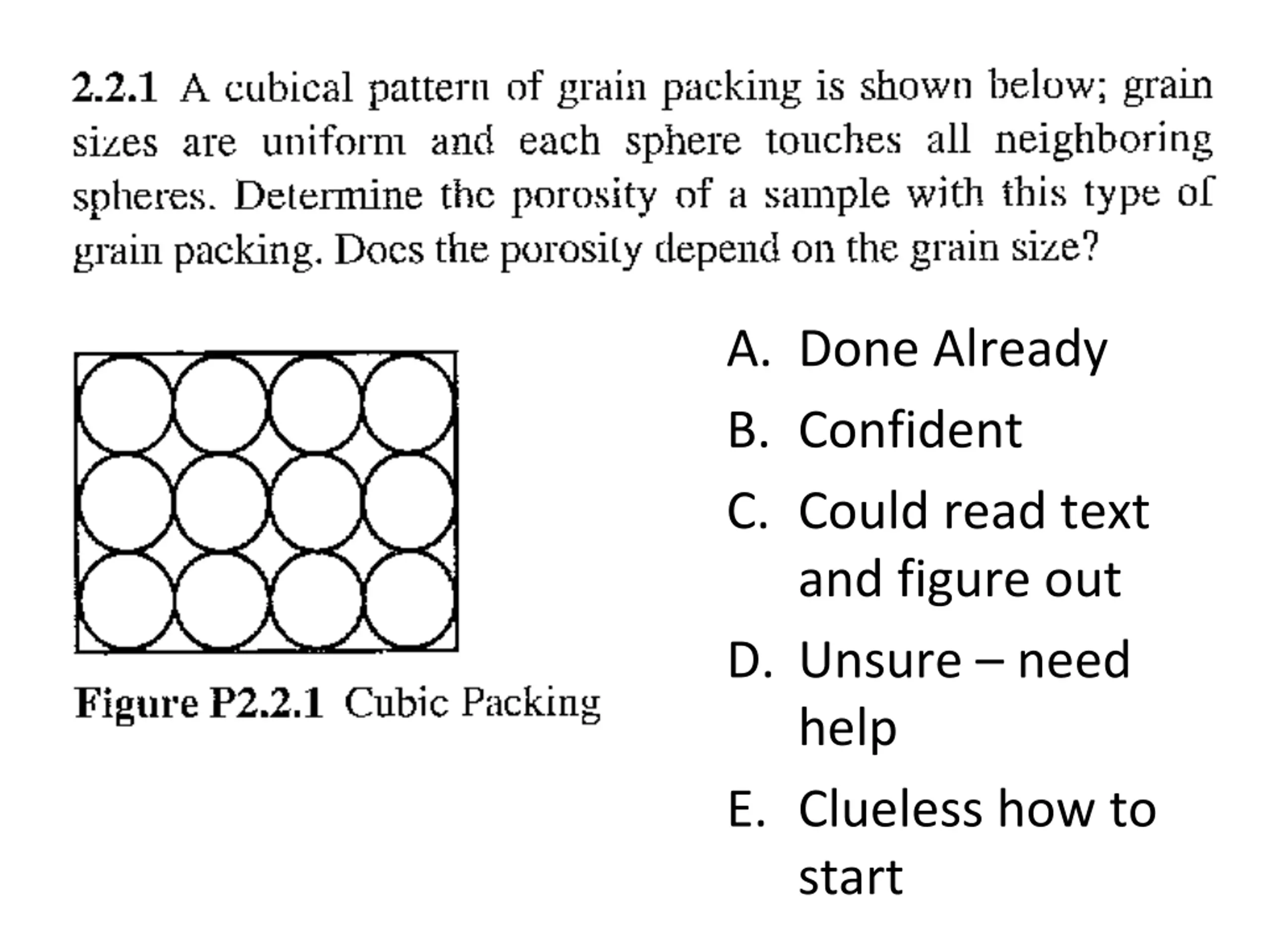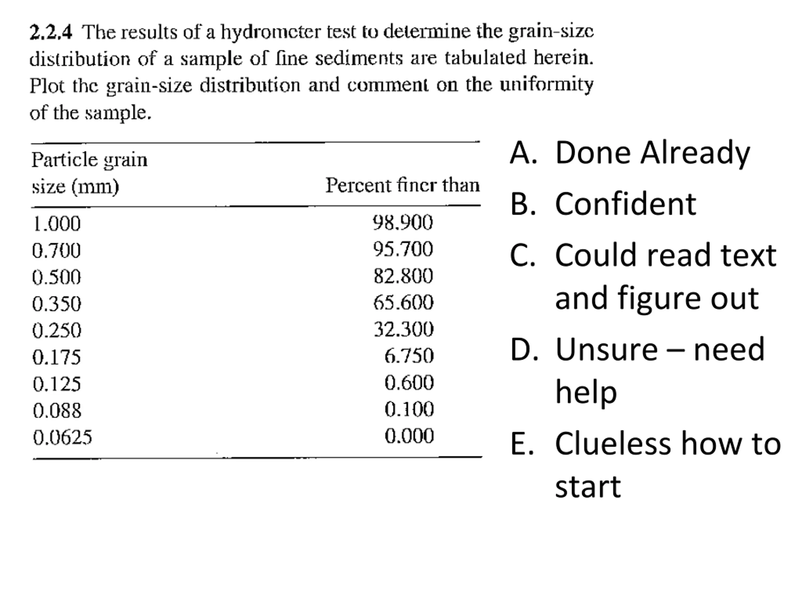 A. Done Already B. Confident C. Could read text and figure out D. Unsure need help E. Clueless how to start
