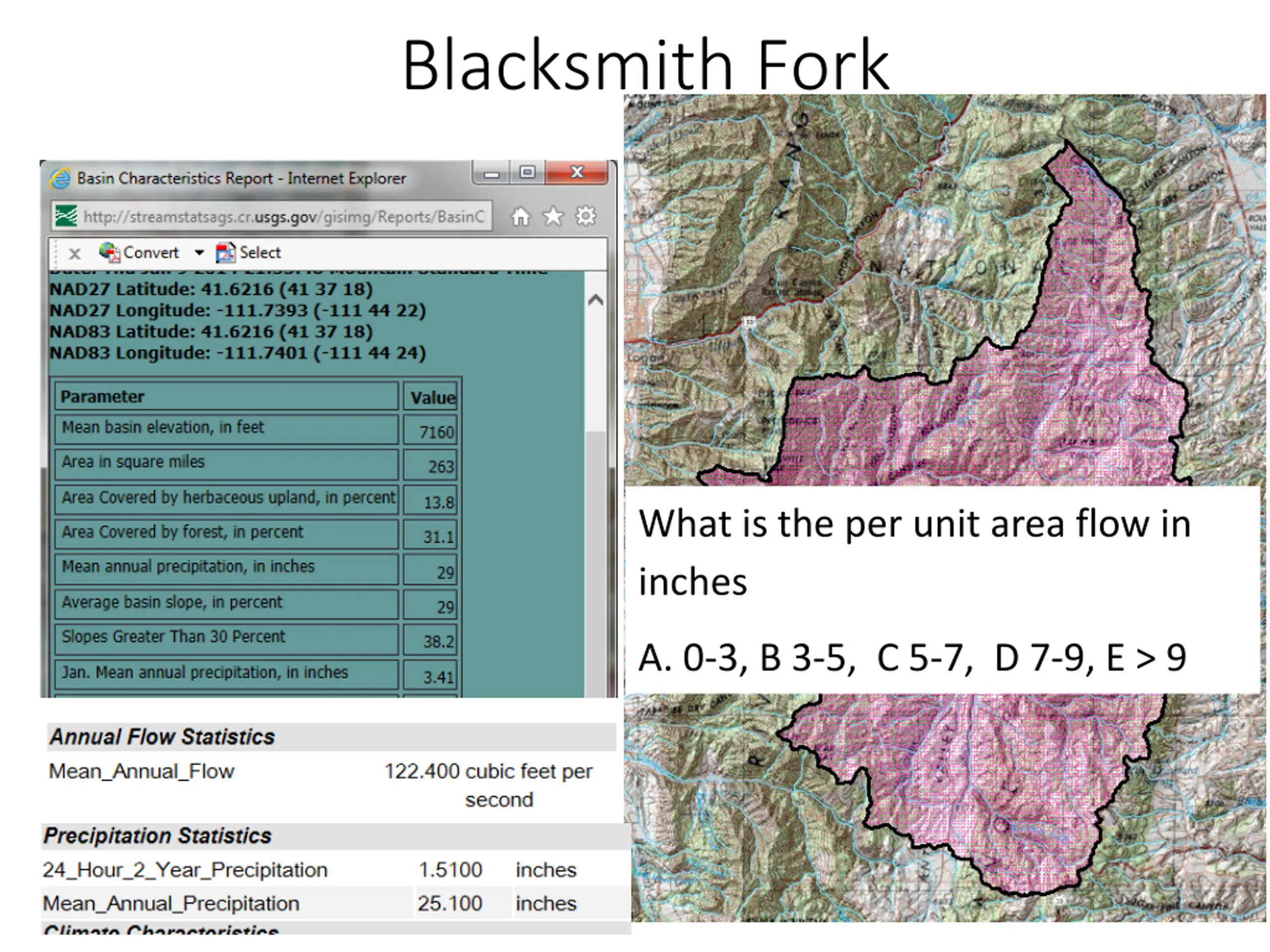 Blacksmith Fork What is the per unit area flow in inches A. 0-3, B 3-5, C 5-7, D 7-9, E > 9