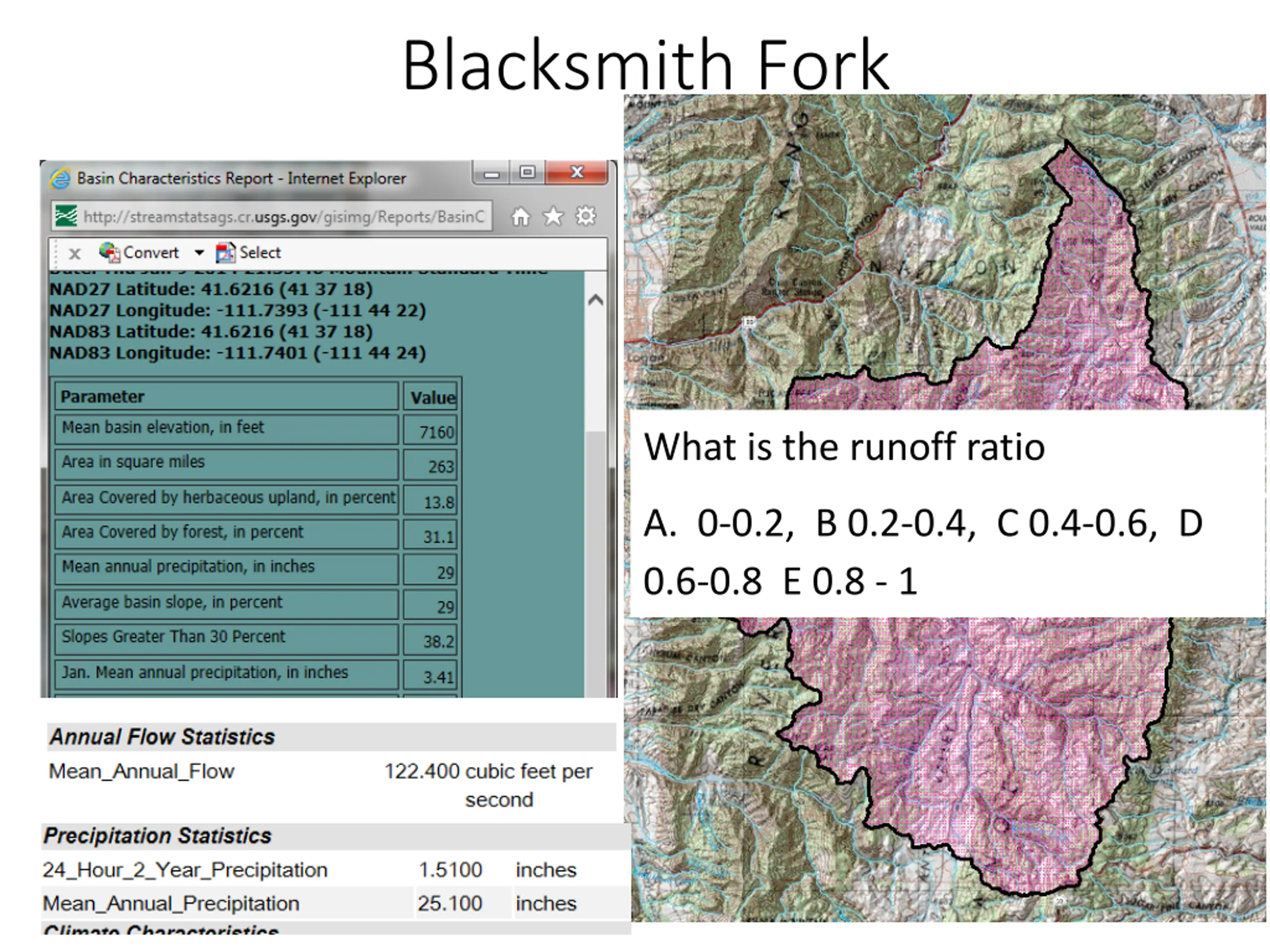 Blacksmith Fork What is the runoff ratio A. 0-0.2, B 0.2-0.4, C 0.4-0.6, D 0.6-0.8 E 0.8 - 1