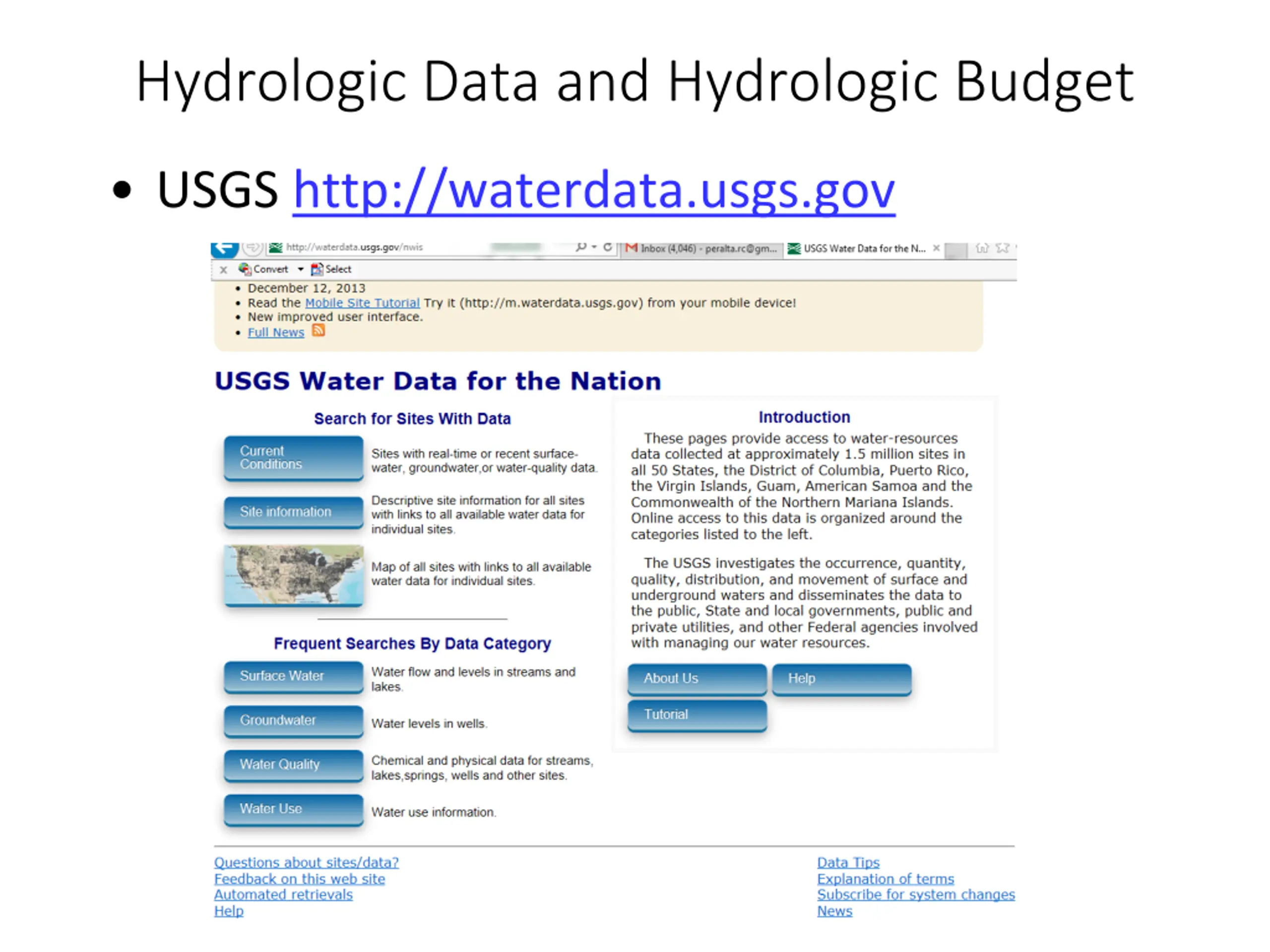 Hydrologic Data and Hydrologic Budget USGS http://waterdata.usgs.gov