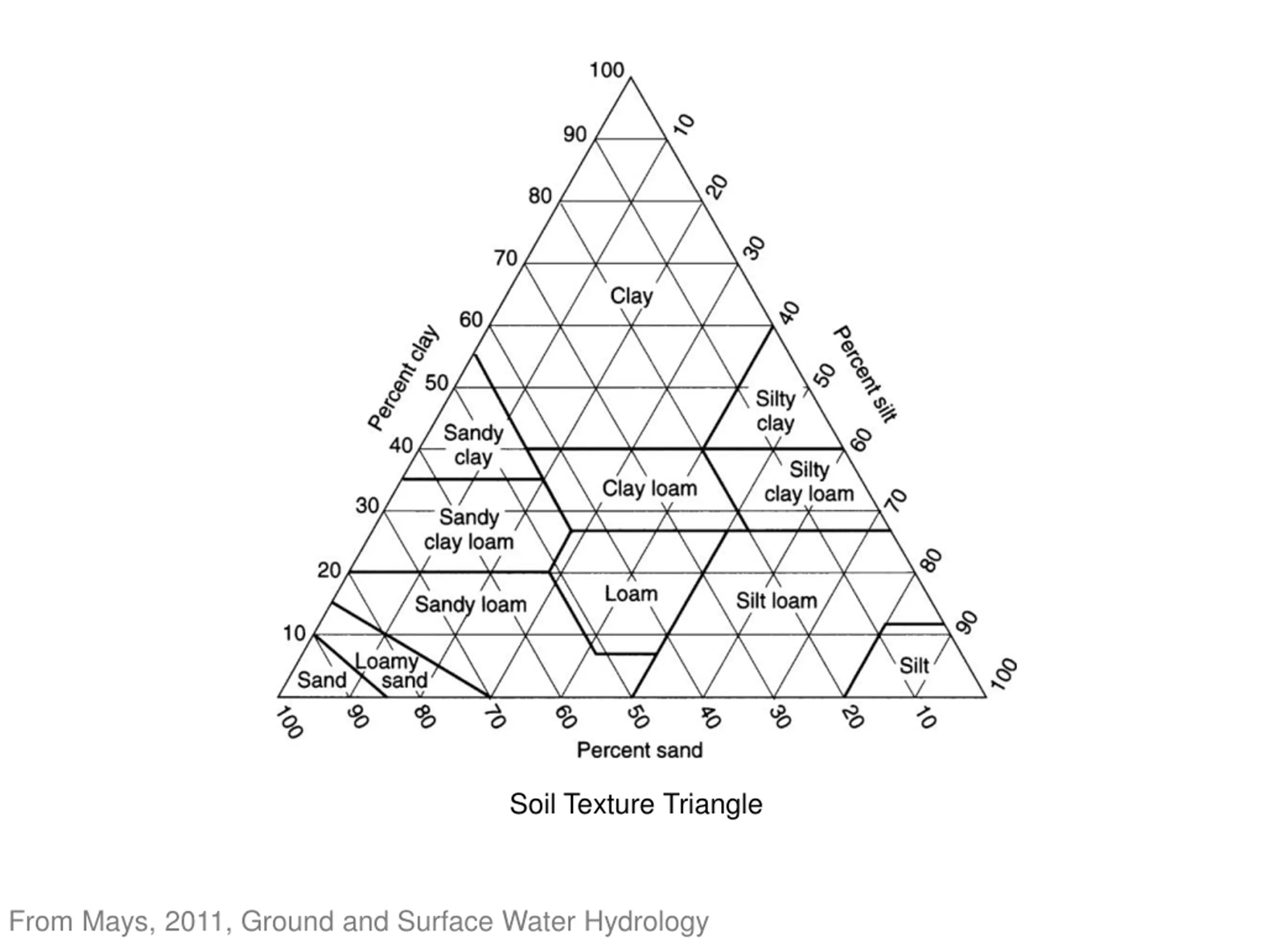 Soil Texture Triangle From Mays, 2011, Ground and Surface Water Hydrology