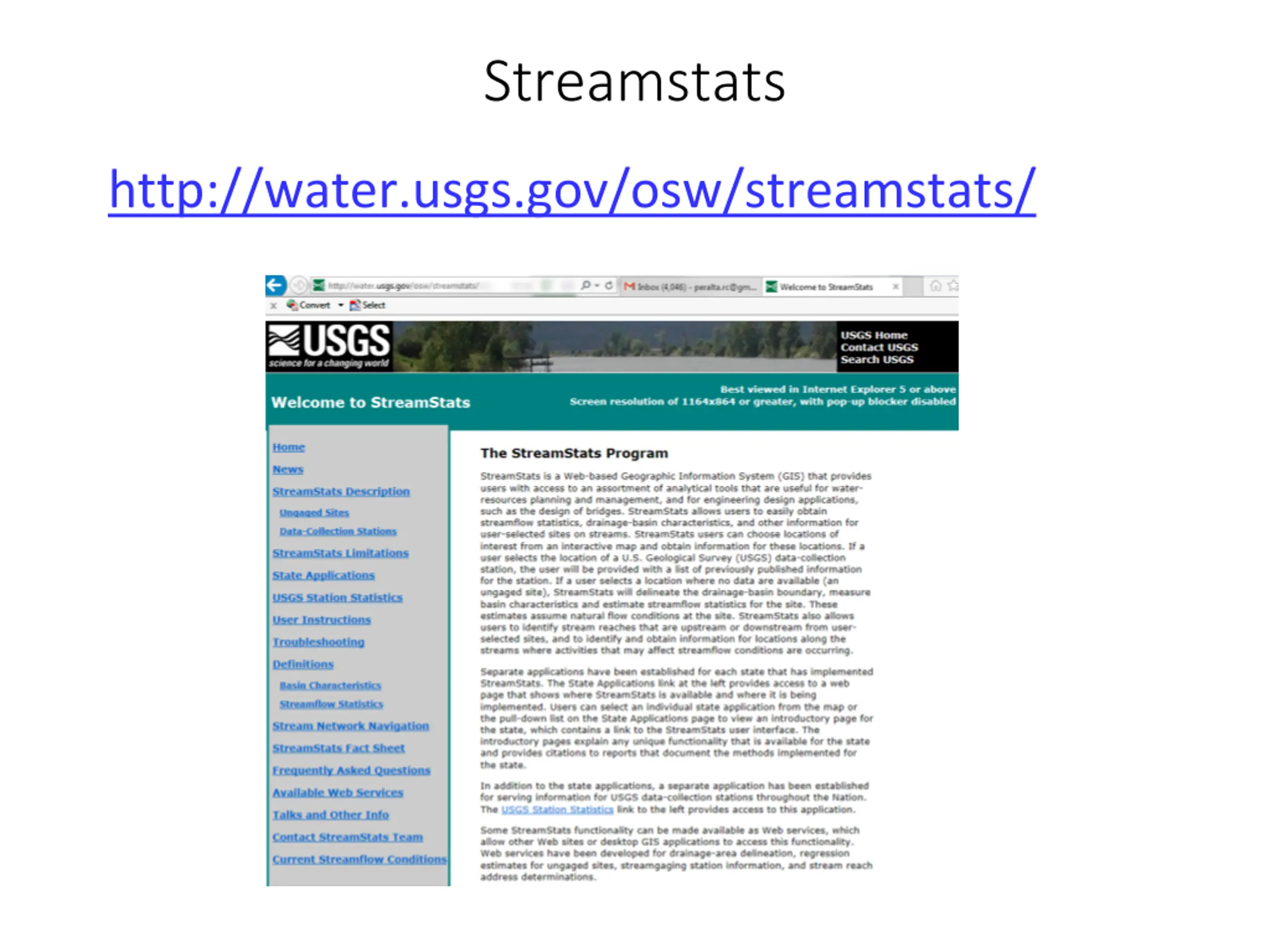 Streamstats http://water.usgs.gov/osw/streamstats/