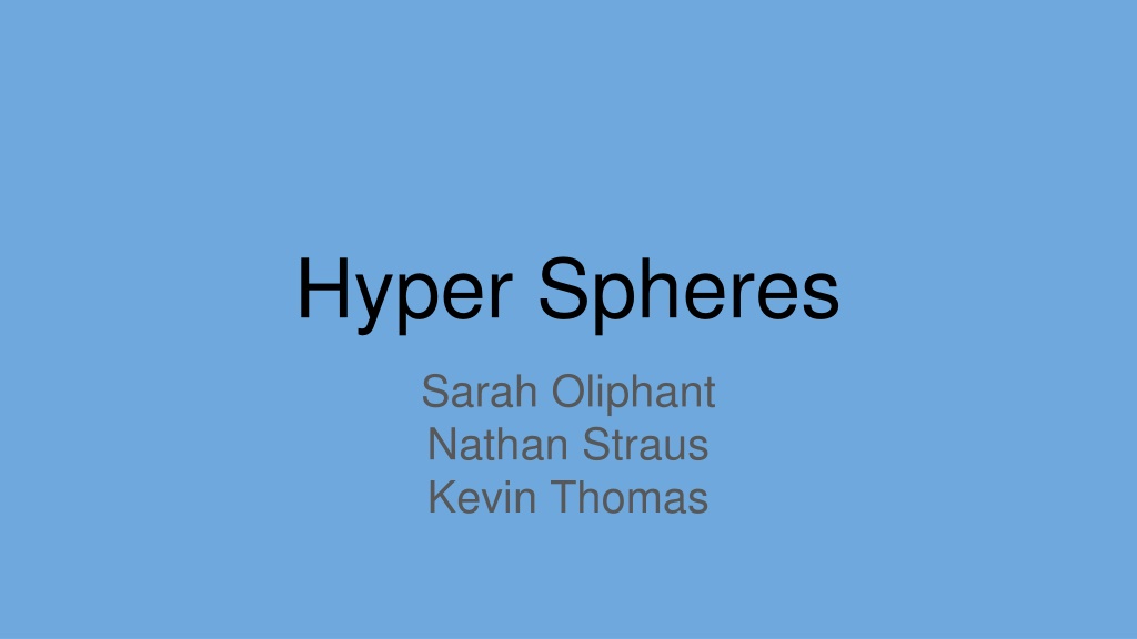 Hyper Spheres Sarah Oliphant Nathan Straus Kevin Thomas
