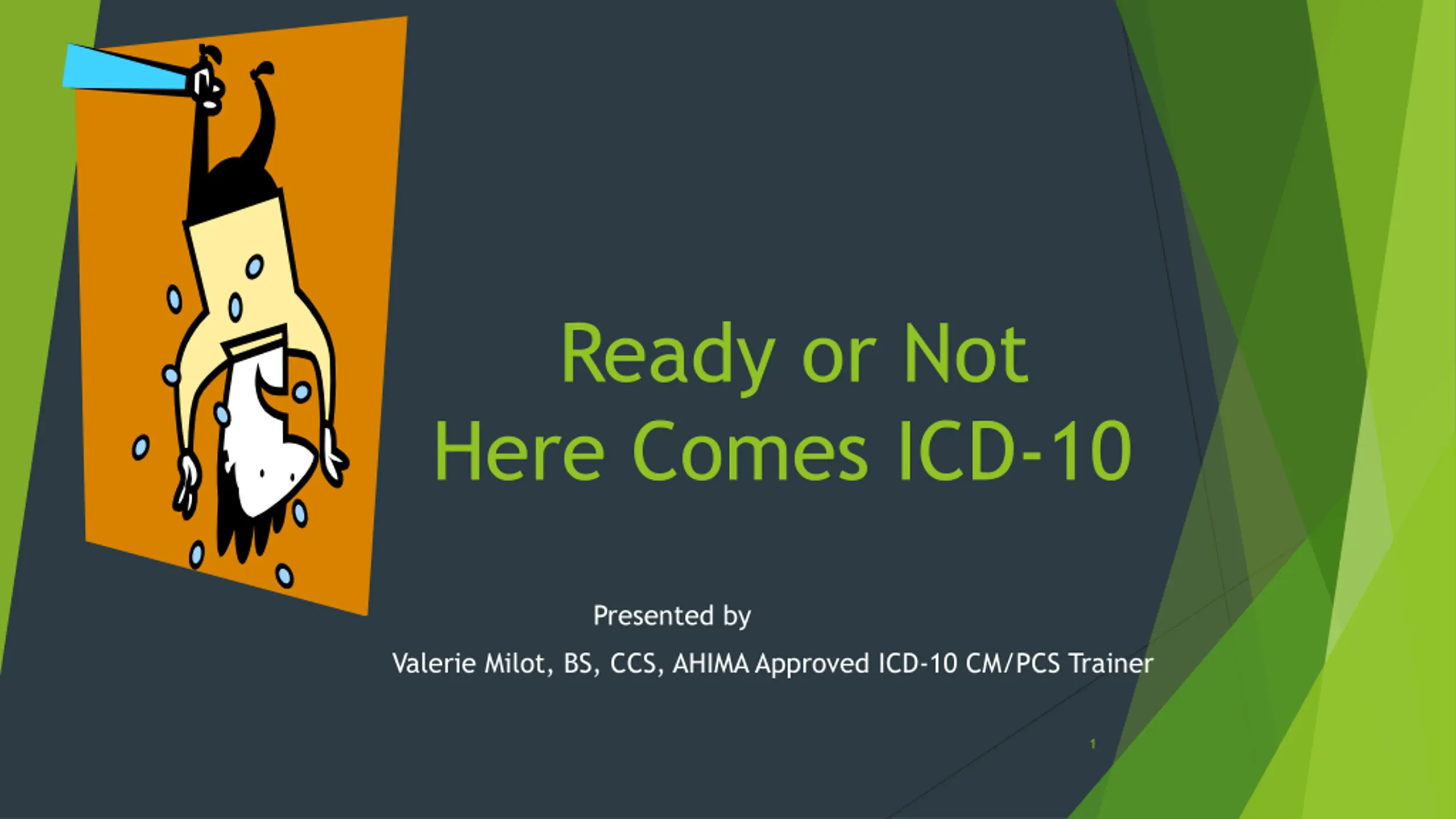 Ready or Not Here Comes ICD-10 Presented by Valerie Milot, BS, CCS, AHIMA Approved ICD-10 CM/PCS Trainer 1