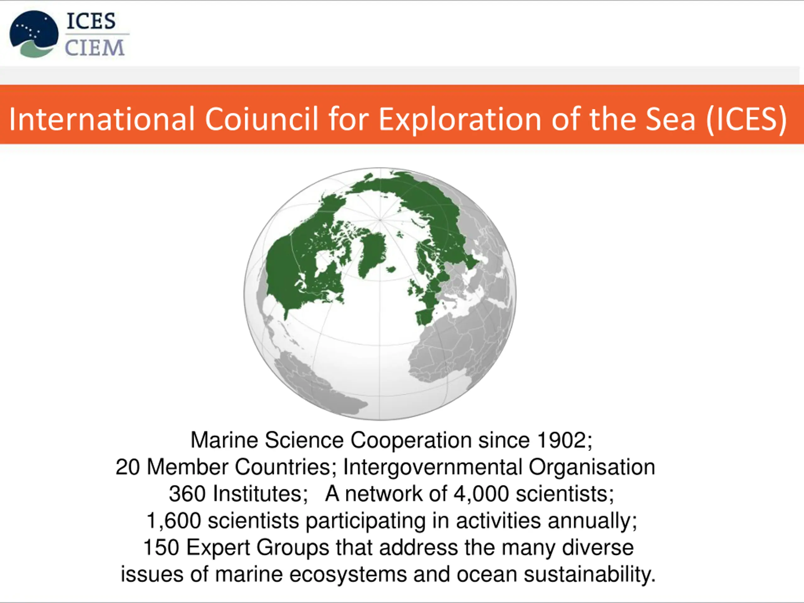 International Coiuncil for Exploration of the Sea (ICES) Marine Science Cooperation since 1902; 20 Member Countries; Intergovernmental Organisation 360 Institutes; A network of 4,000 scientists; 1,600 scientists participating in activities annually; 150 Expert Groups that address the many diverse issues of marine ecosystems and ocean sustainability.