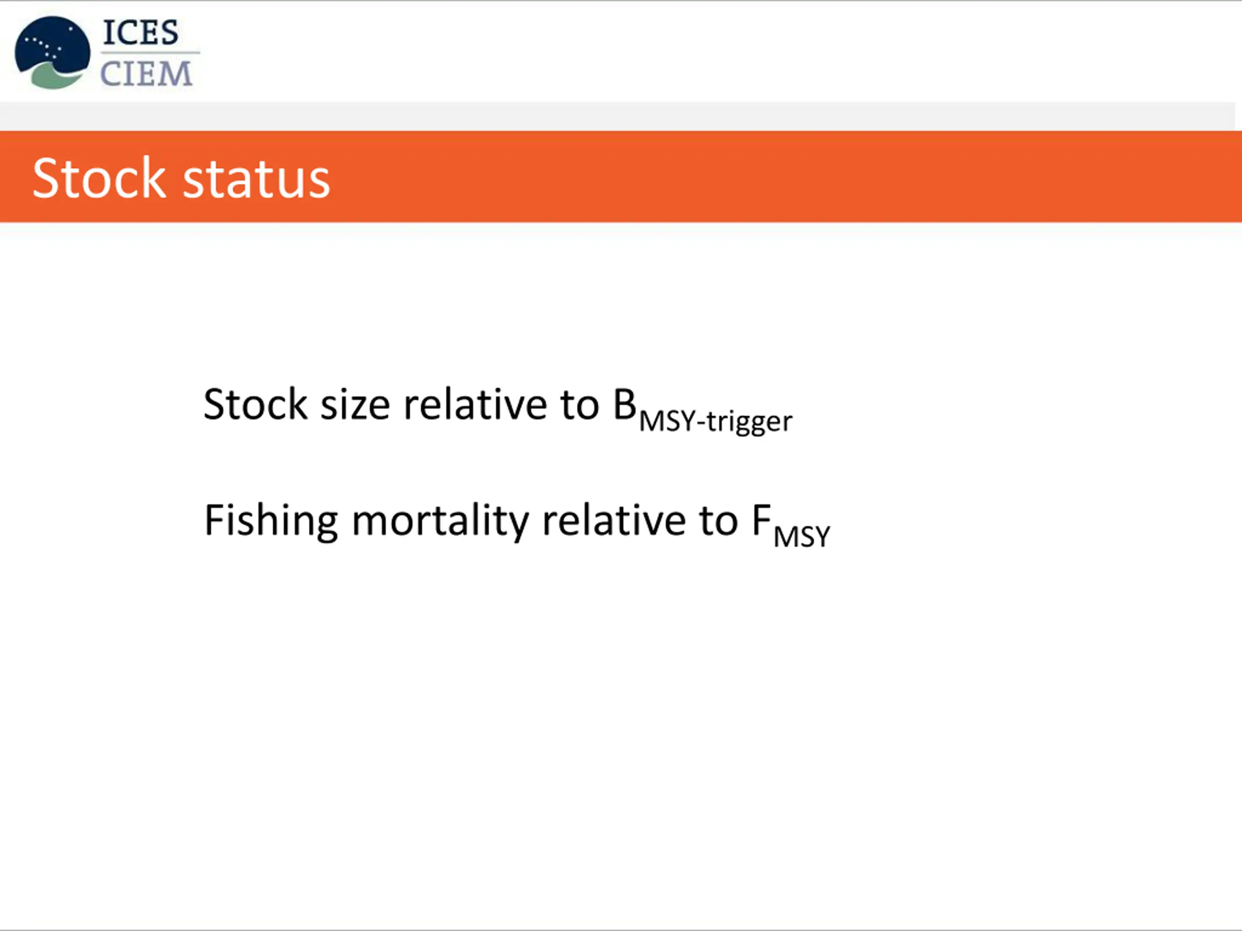 Stock status Stock size relative to BMSY-trigger Fishing mortality relative to FMSY