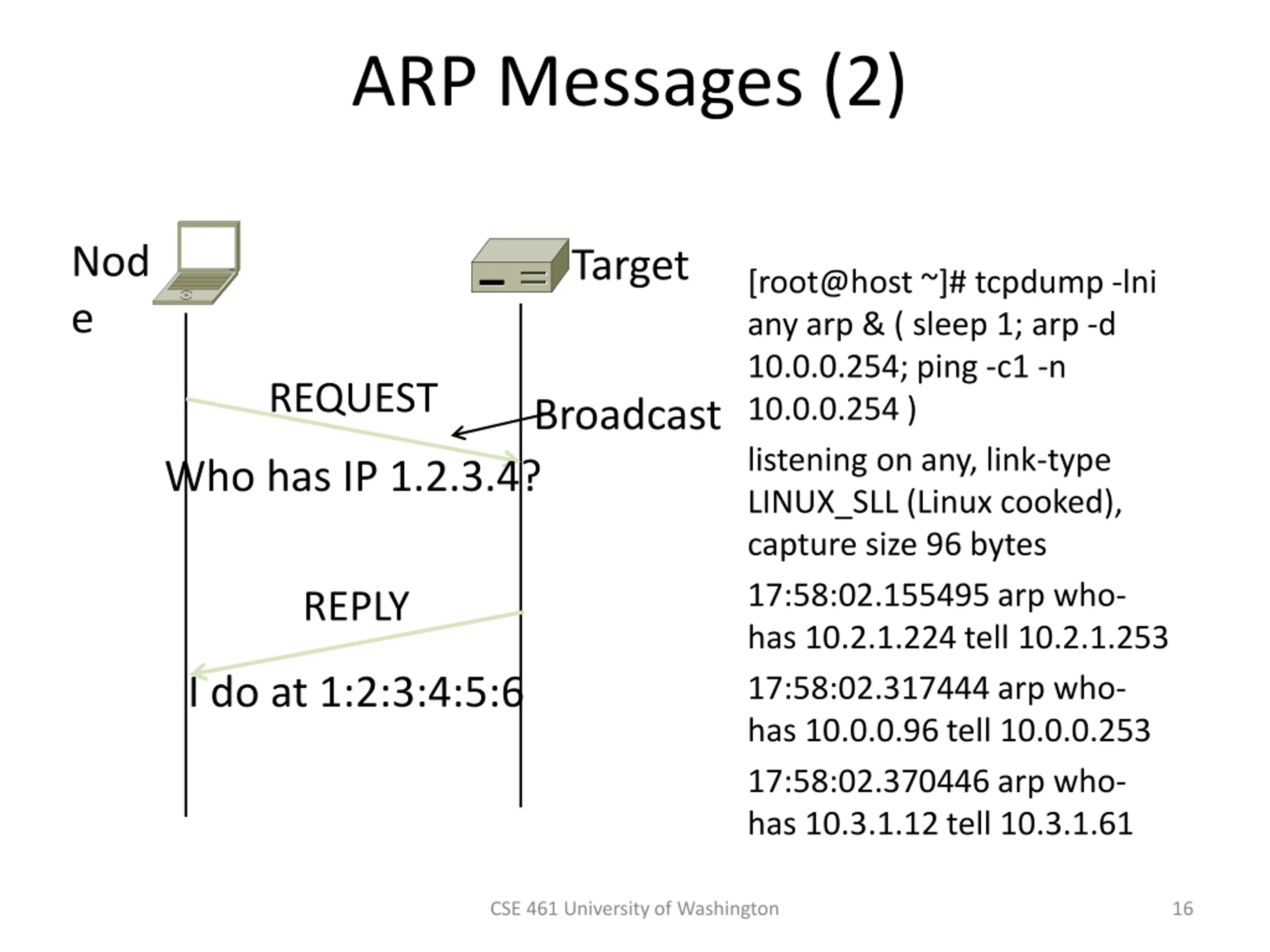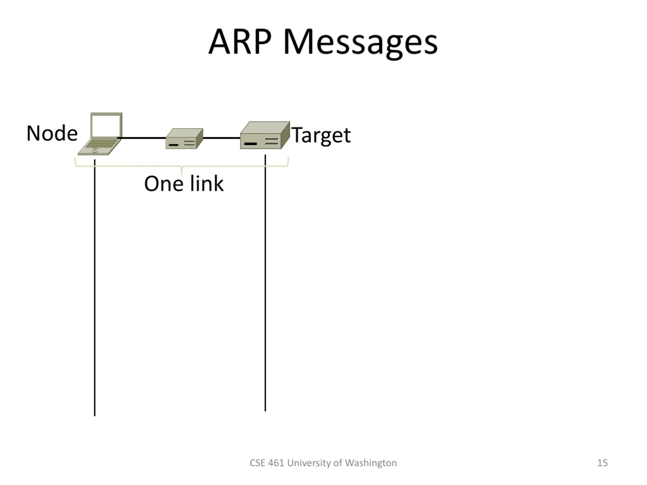 ARP Messages Node Target One link CSE 461 University of Washington 15