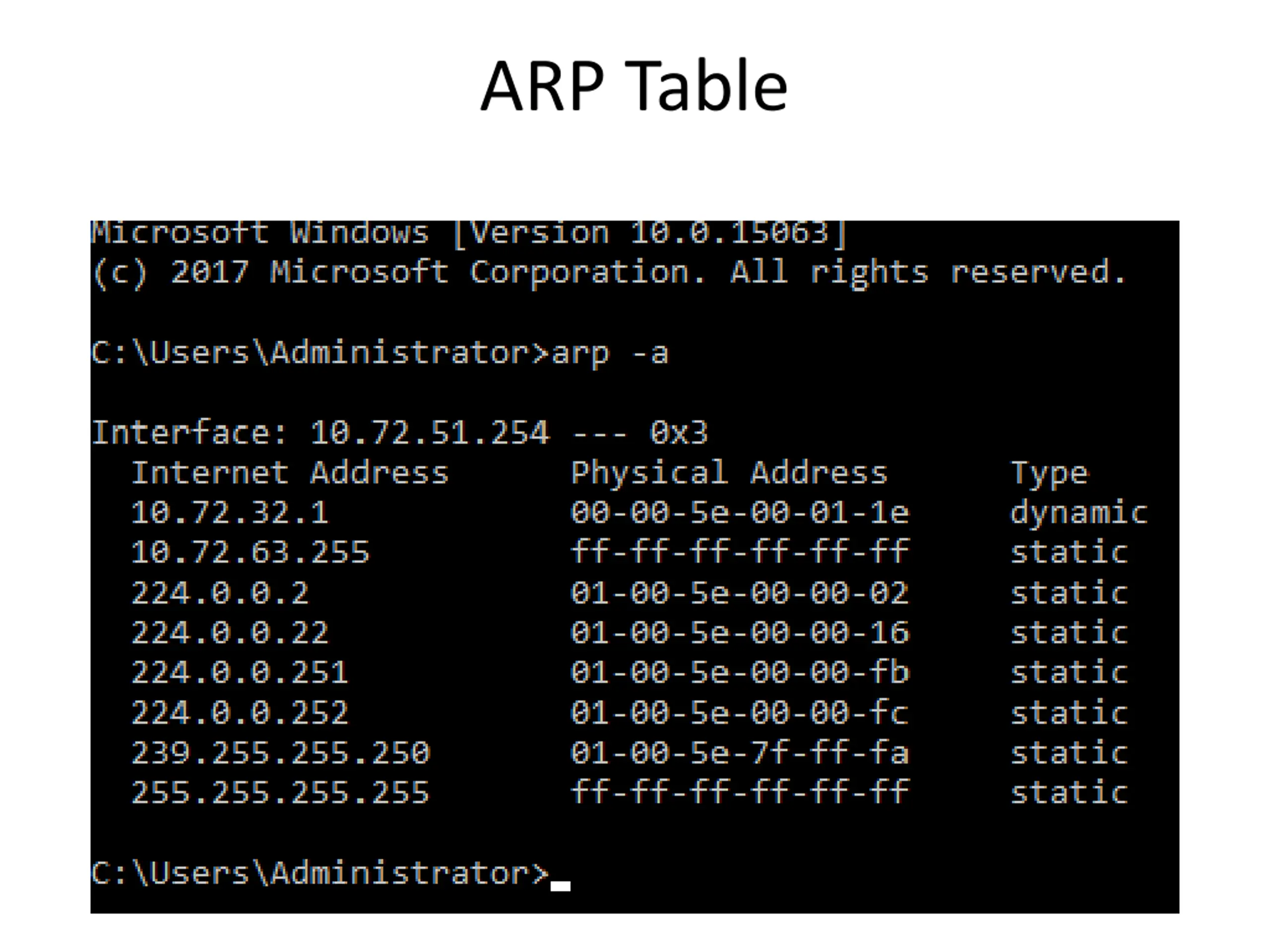 ARP Messages (2) Nod e Target [root@host ~]# tcpdump -lni any arp & ( sleep 1; arp -d 10.0.0.254; ping -c1 -n 10.0.0.254 ) listening on any, link-type LINUX_SLL (Linux cooked), capture size 96 bytes 17:58:02.155495 arp who- has 10.2.1.224 tell 10.2.1.253 17:58:02.317444 arp who- has 10.0.0.96 tell 10.0.0.253 17:58:02.370446 arp who- has 10.3.1.12 tell 10.3.1.61 REQUEST Broadcast Who has IP 1.2.3.4? REPLY I do at 1:2:3:4:5:6 CSE 461 University of Washington 16