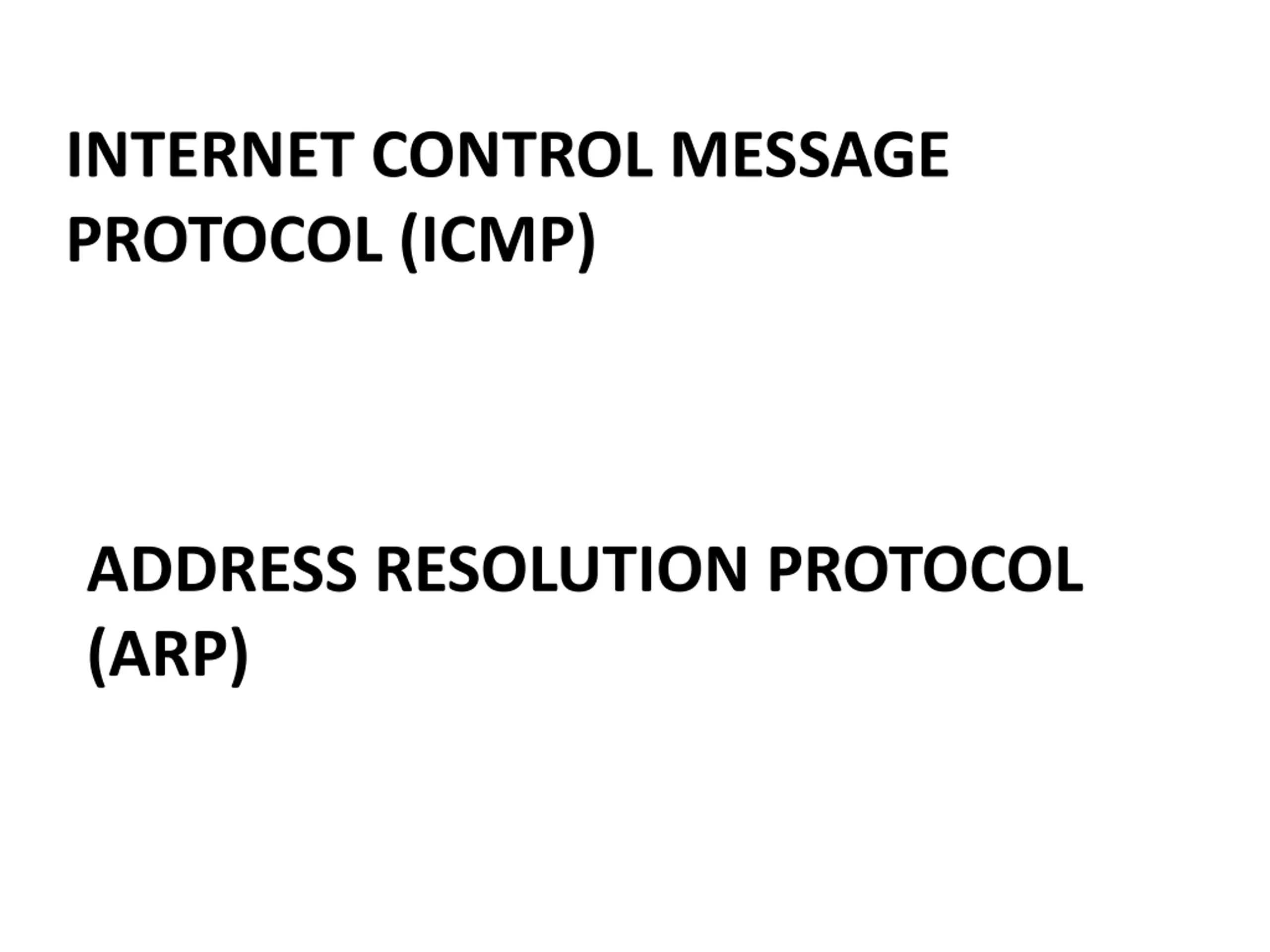 INTERNET CONTROL MESSAGE PROTOCOL (ICMP) ADDRESS RESOLUTION PROTOCOL (ARP)