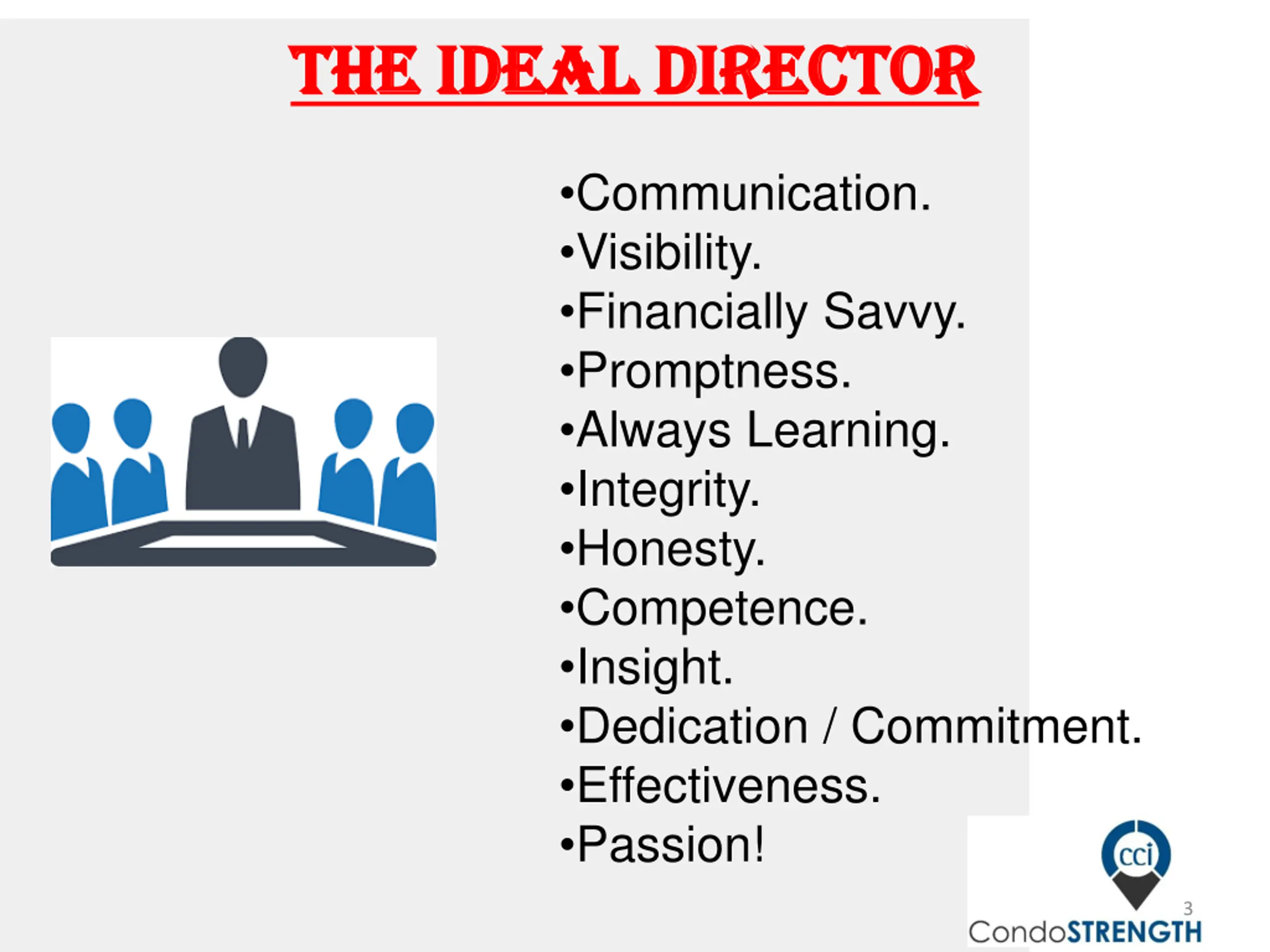 The Ideal Director The Ideal Director Communication. Visibility. Financially Savvy. Promptness. Always Learning. Integrity. Honesty. Competence. Insight. Dedication / Commitment. Effectiveness. Passion! 3