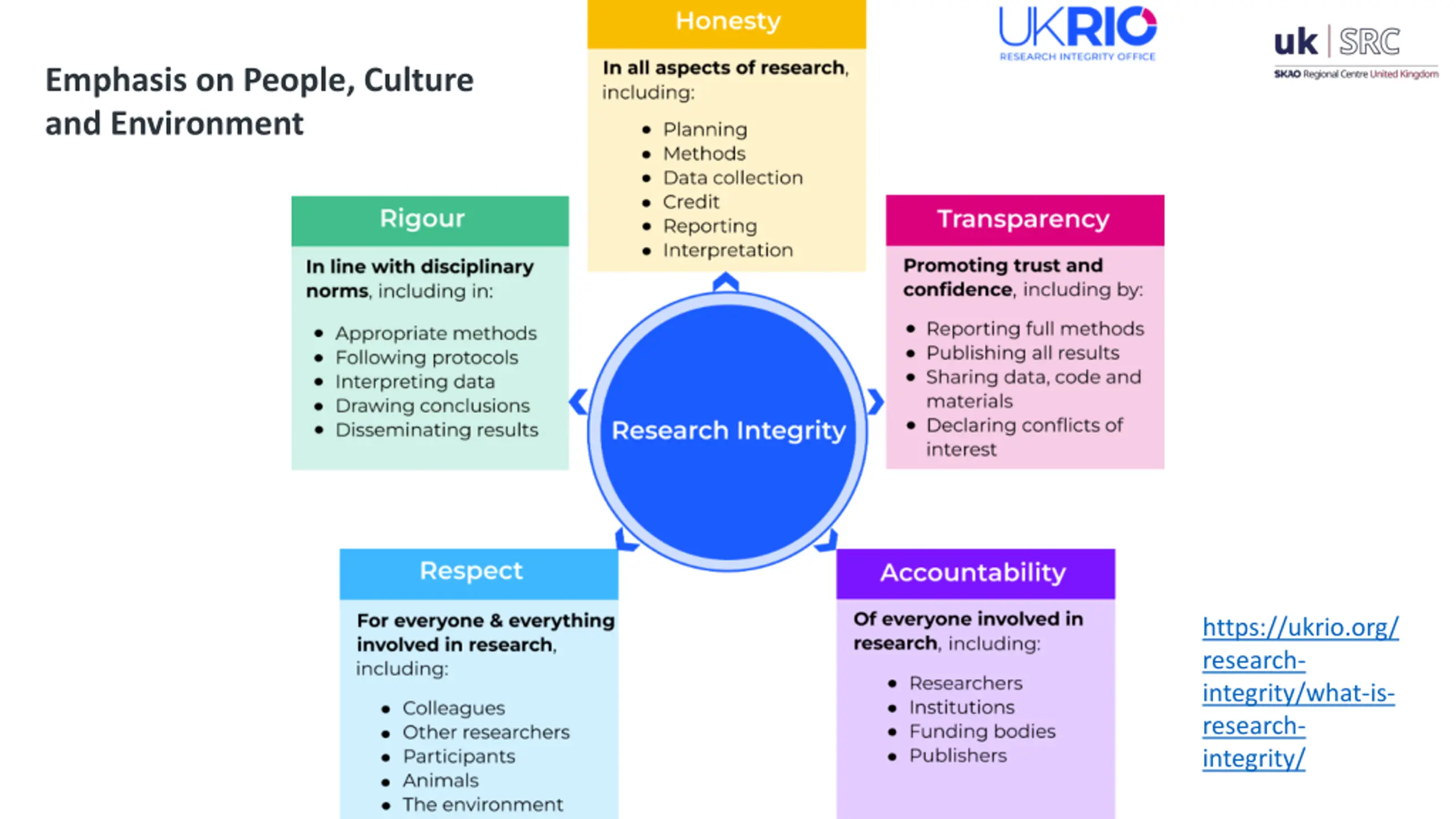 - Emphasis on People, Culture and Environment https://ukrio.org/ research- integrity/what-is- research- integrity/